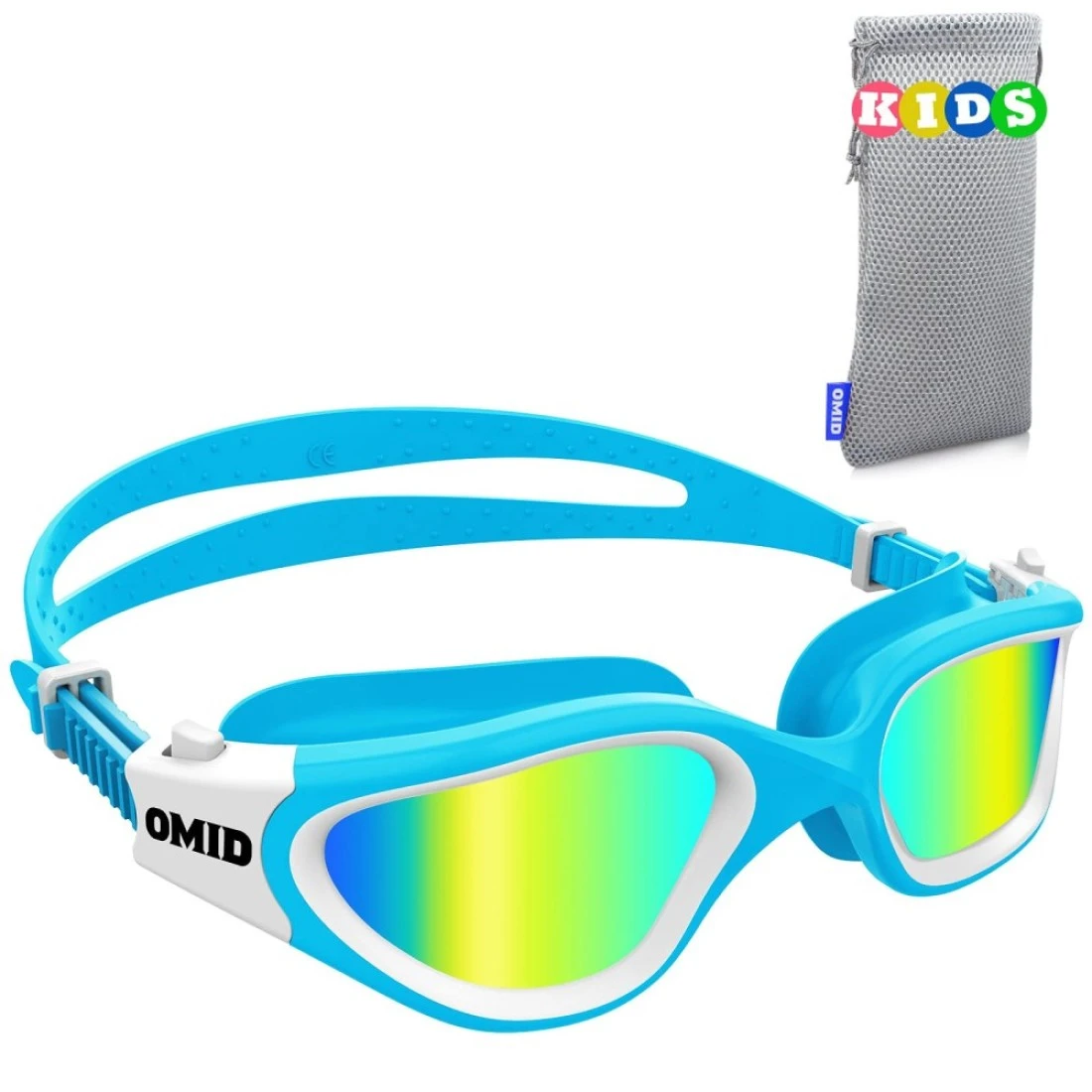 OMID Kids Swim Goggles, P2mini Polarized Swimming Goggles Comfortable for Age 6-14 (A1-Mirrored Gold Lens Blue Frame)