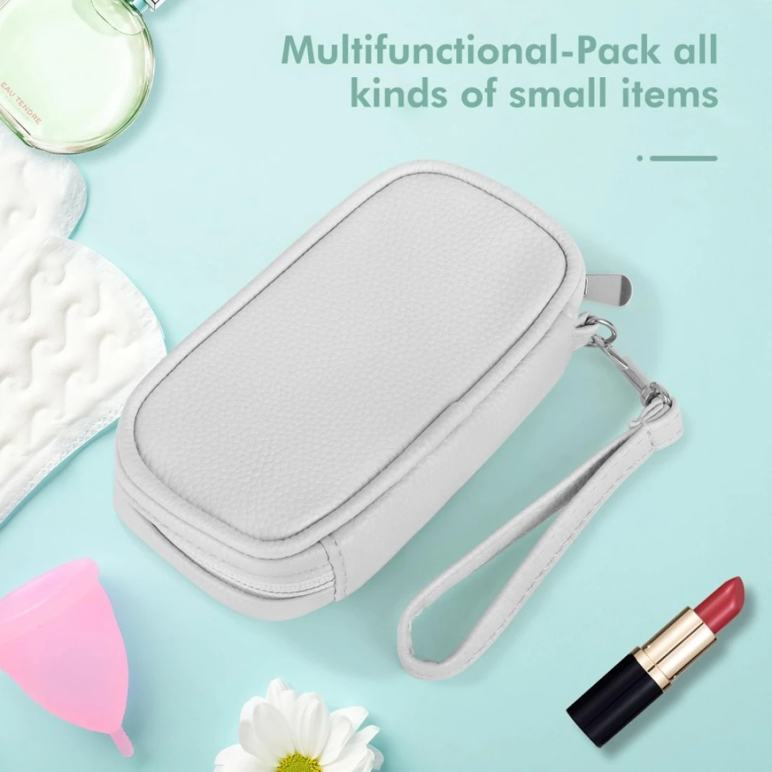 Cute Tampon Storage Bag Tampon Holder for Purse Tampon Organizer Bag with Handle PU Leather Tampon Pouch Small Case for Feminine Products with Zipper Period Bags for Teen Girls Women