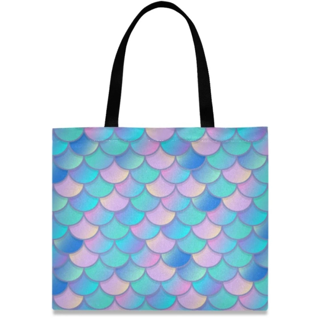 visesunny Women's Large Canvas Tote Shoulder Bag Rainbow Mermaid Scale Top Storage Handle Shopping Bag Casual Reusable Tote Bag for Beach,Travel,Groceries,Books