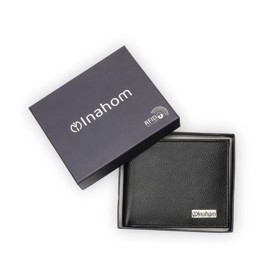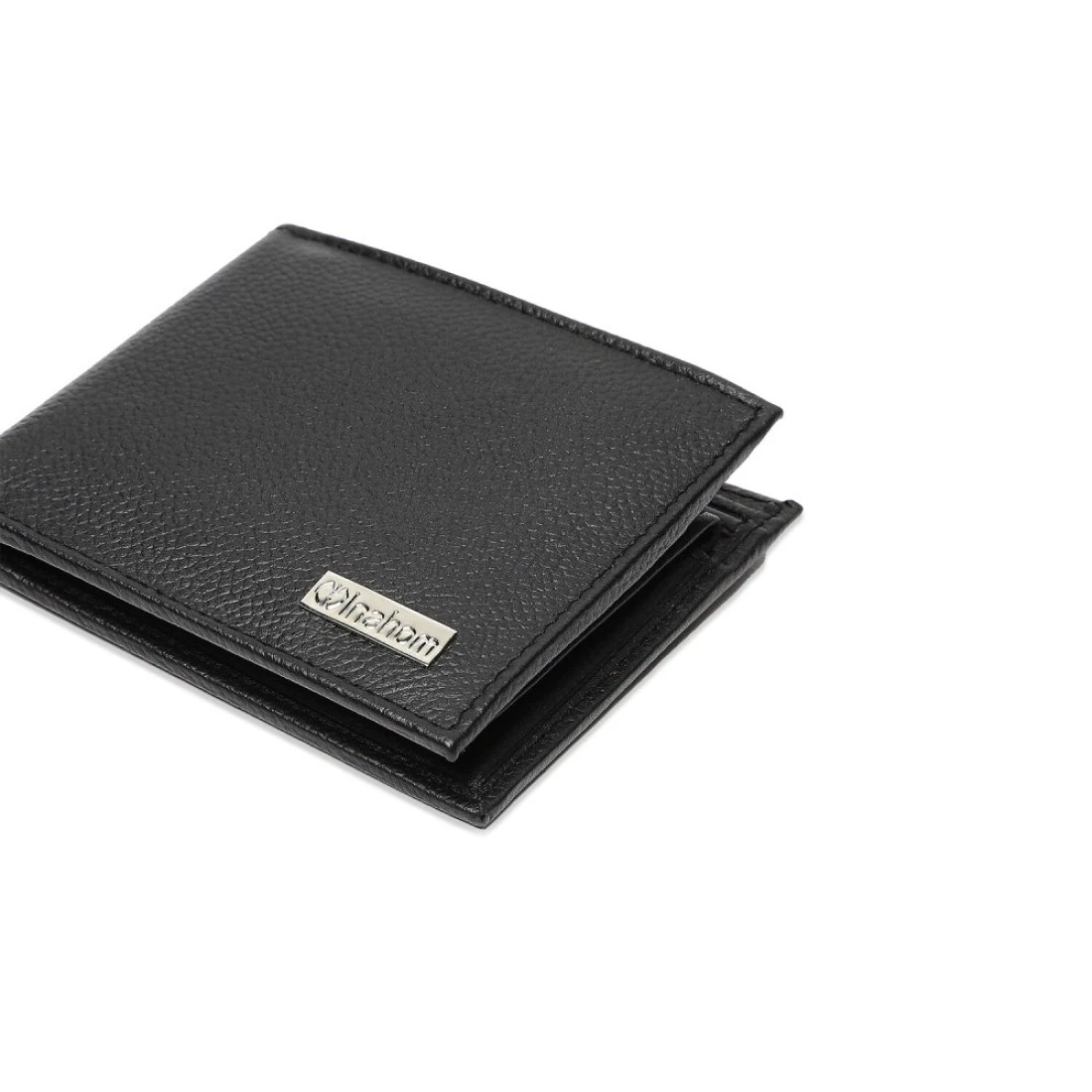 Inahom محفظة ثنائية الطي منظمة ومسطحة من جلد نابا الأصلي والناعم IM2021XDA0007-001- أسود