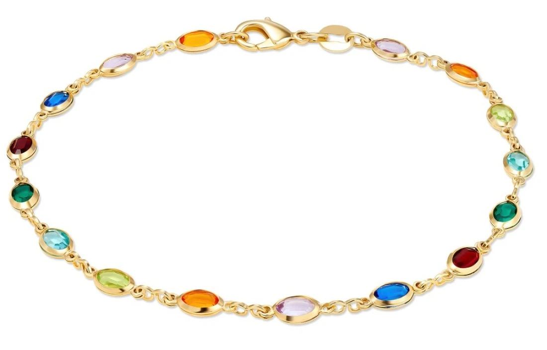 Barzel 18K Gold Plated Multi Color Crystal Baguette Anklet (Multicolor Dark Oval)