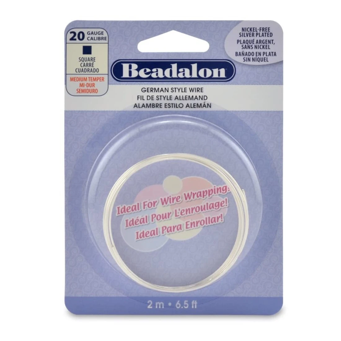Beadalon German Style Wire Square Silver Plated 20 Gauge032 in2 m65 ft