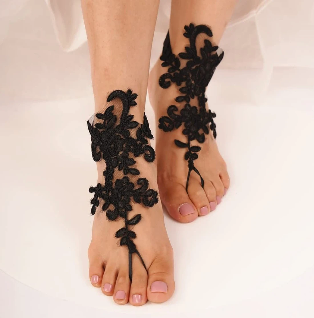 Sither Foot Lace for Beach Wedding Barefoot Sandals Black Lace Anklet for Bride Barefoot Lace for Women Foot Anklet Jewelry Accessories On Summer Beach Gift for Her on Halloween Costume Party