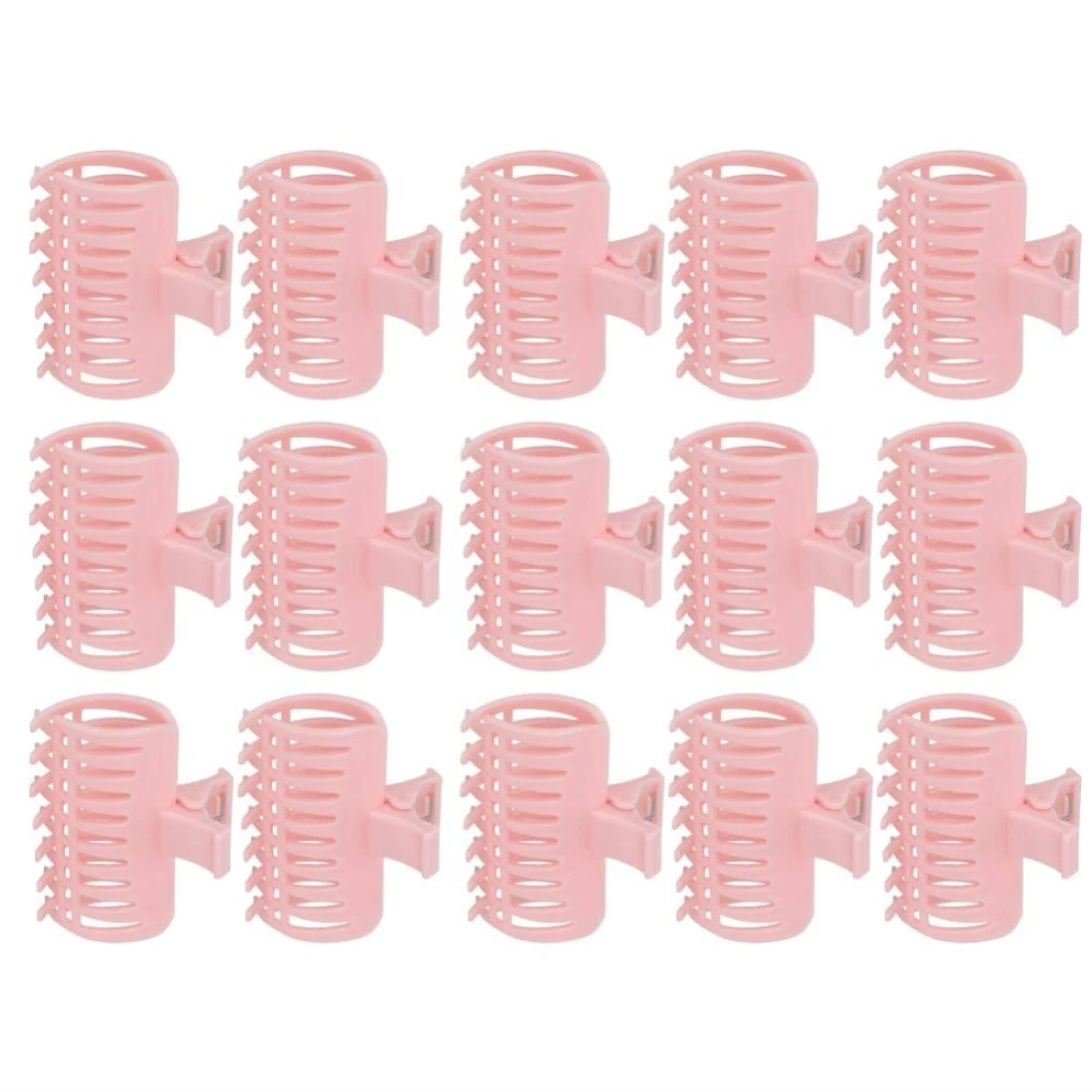 Haosie 15PCS Hot Roller Clips Curler Claw Clips for Girls Women Hair Section Fixing Clamps Holding Hairdressing Tool for Long and Medium Hair Pink