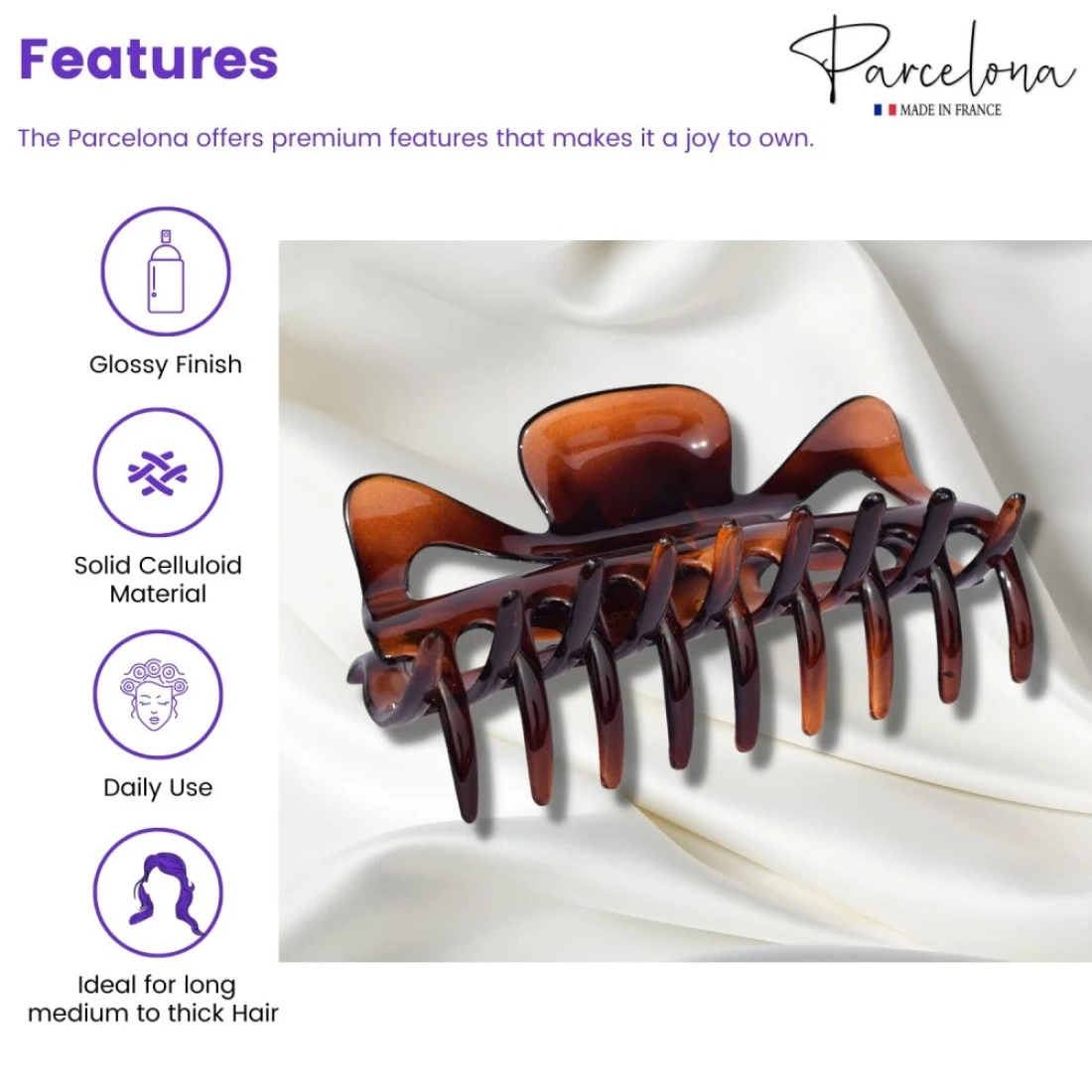 Parcelona French Classic Jumbo Large 5 12 Celluloid Acetate No Slip Grip Jaw Hair Claw Clip Strong Hold Durable Styling Volume Women Hair Accessories Made in France Tortoise Shell Brown
