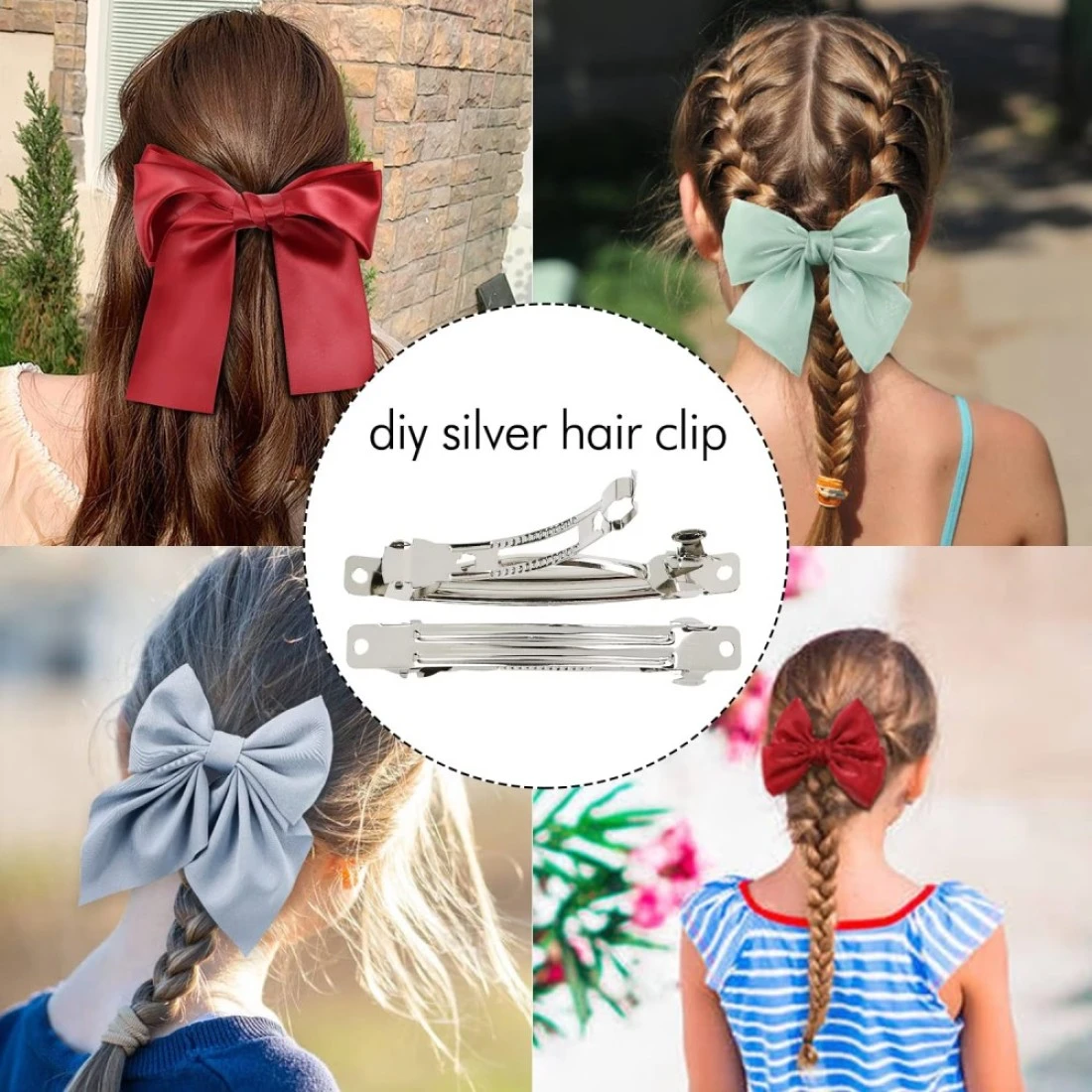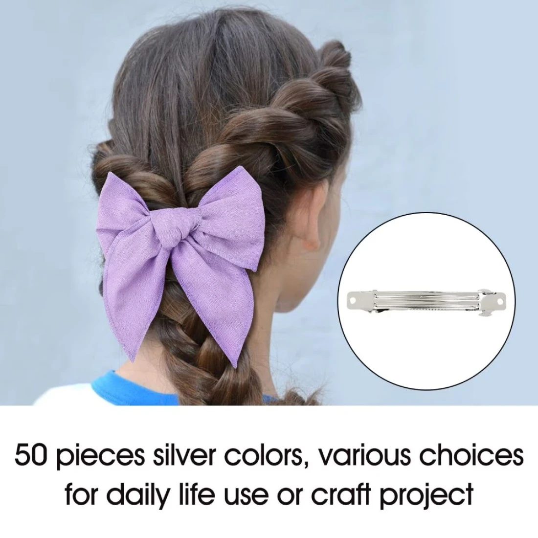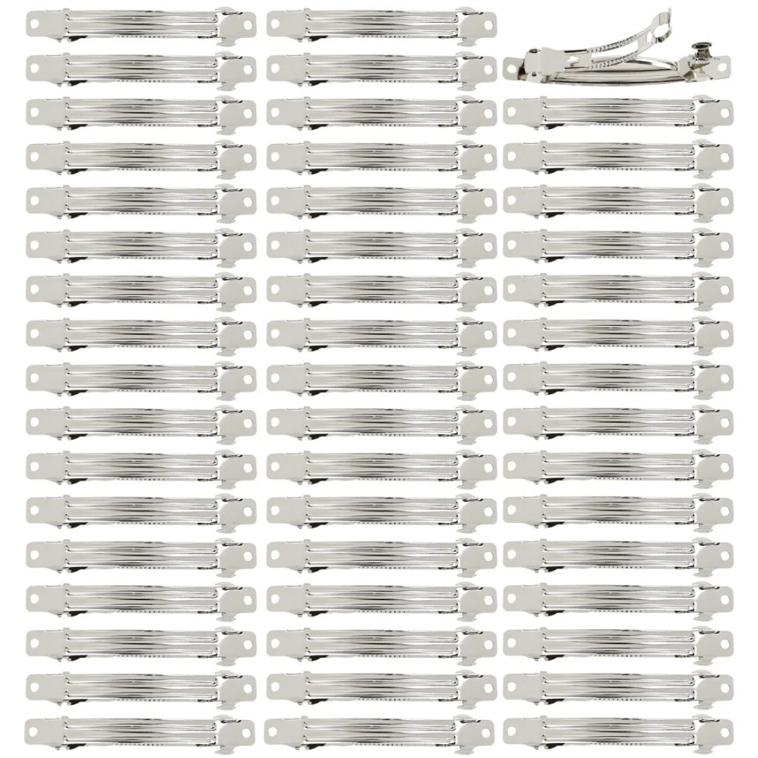 Lawie 50 Pack 8 CM 3.15 Inch Silver Blank Rectangle Metal French Barrette Plain Base Hair Clips DIY Crafting Clips for Bows Snap Hair Clips Ponytail Holder Hairclips Accessories for Women Girl
