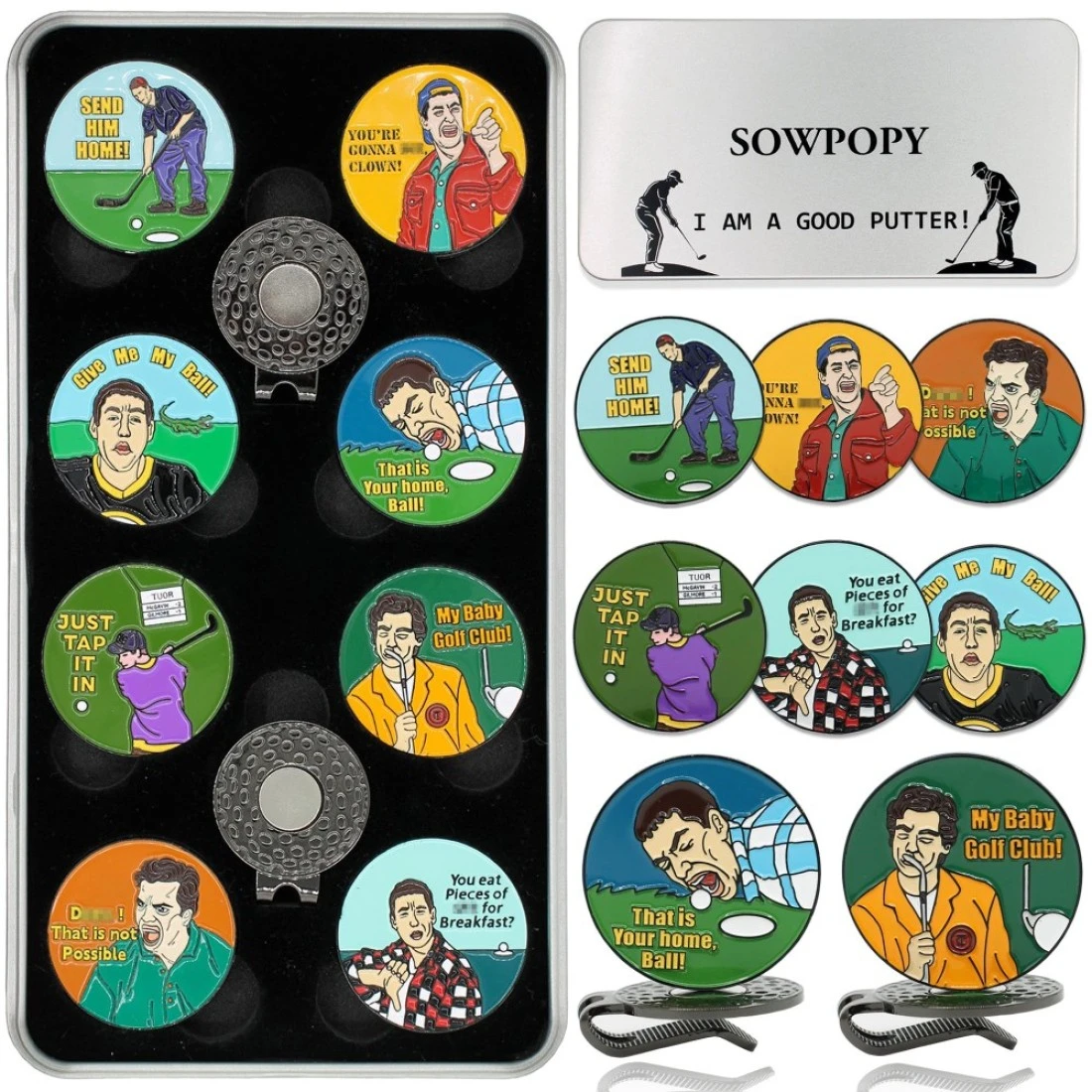 SOWPOPY Funny Golf Ball Marker Golf Gifts for Men, Magnetic Ball Markers Golf Hat Clip Cool Golf Accessories for Golfers, (8 Markers & 2 Hat Clips)