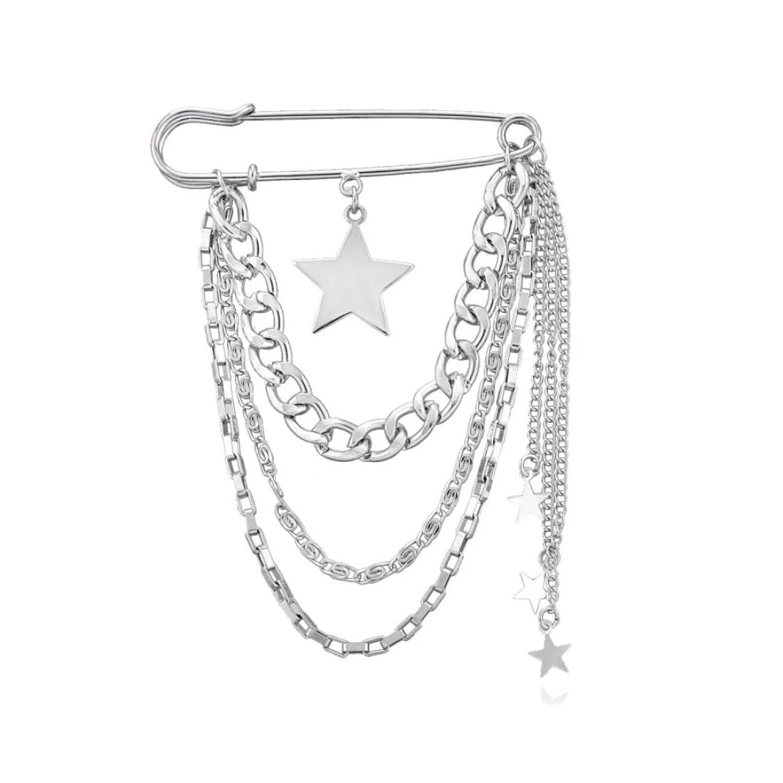 Five-pointed Star Tassel Brooches Pins Fashion Beautiful Created Multilayer Chain Brooch Good Idea for Party Dance Wedding Banquet for Elegant Women Girl