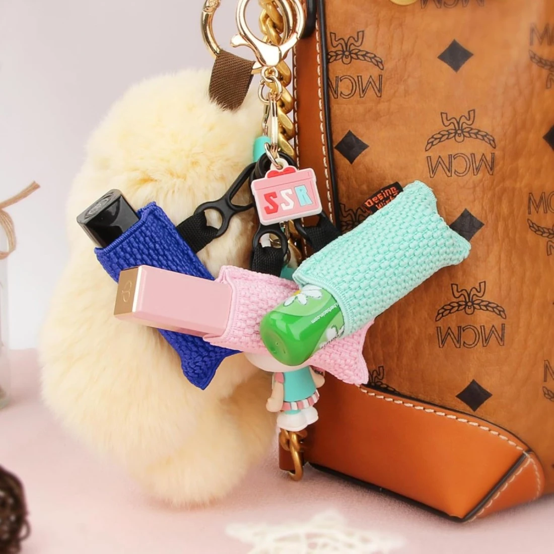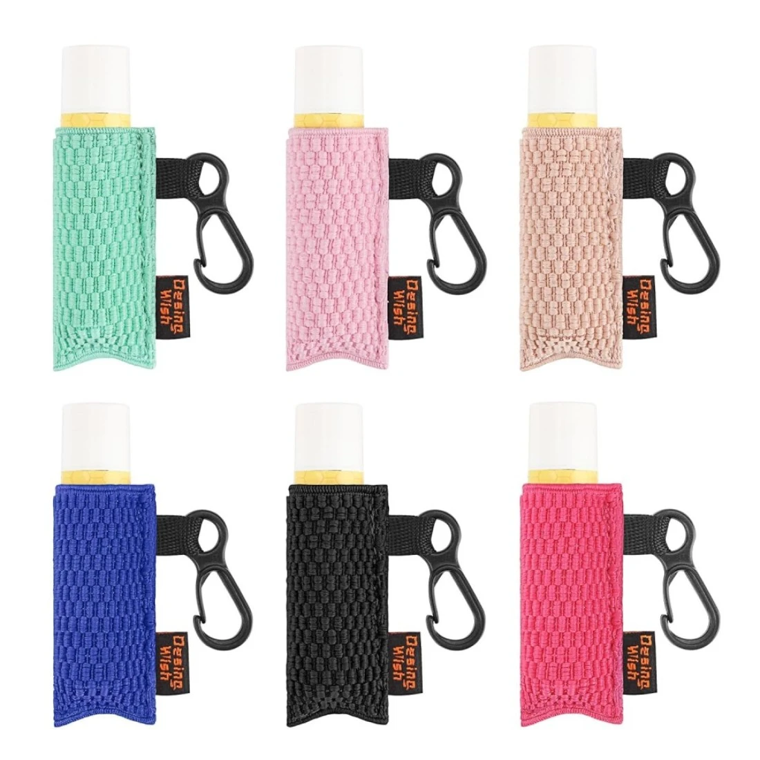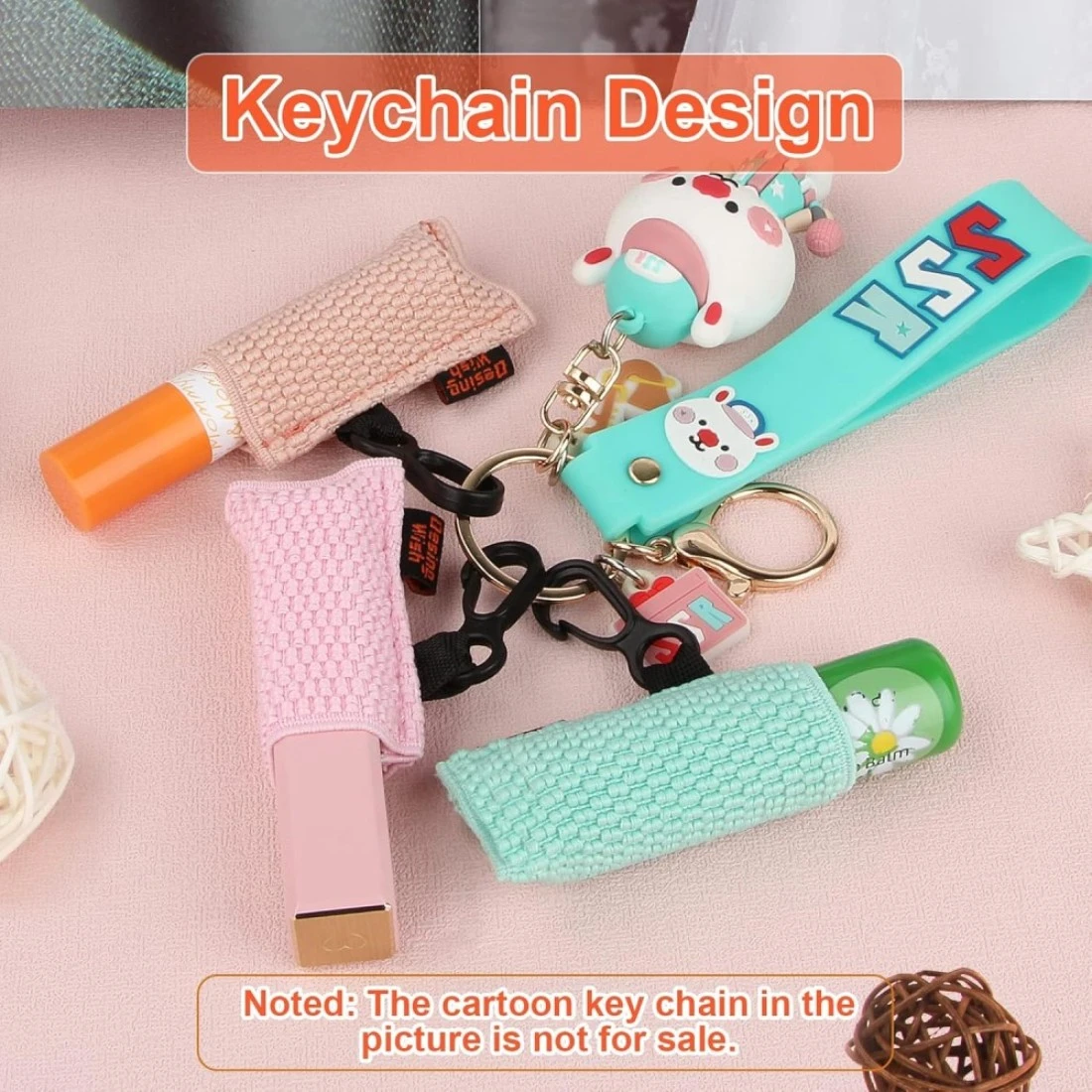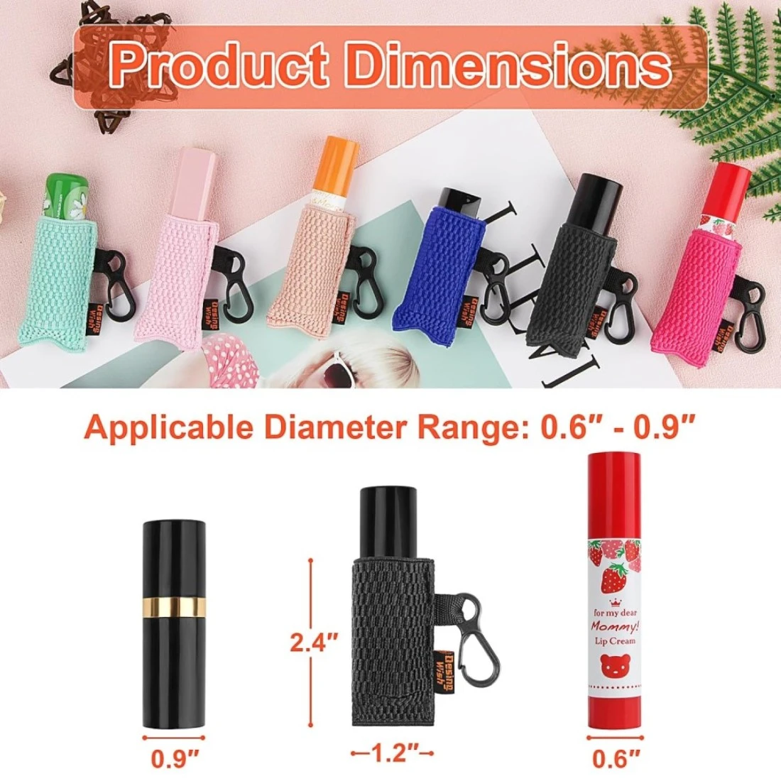 Desing Wish 6 PCS Chapstick Holder Keychain Elastic Sleeve Chapstick Keychain Holder for Lip Balms/Lip Gloss/Lipsticks, Lip Balm Holder Sleeves (Green/Pink/Beige/Black/Red/Blue)