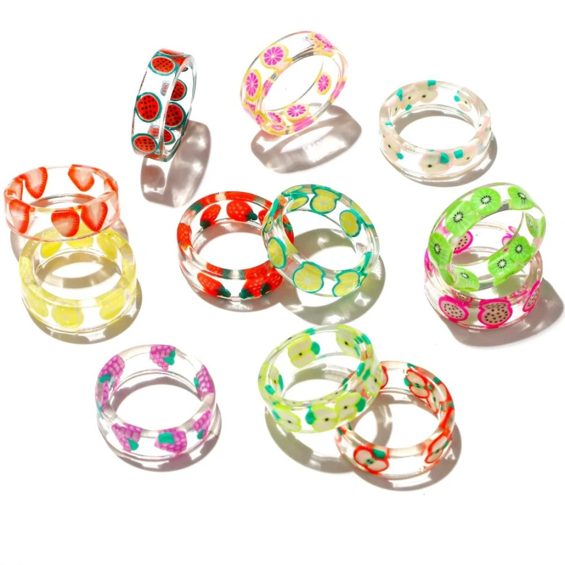 12 Pieces Resin Fruit Rings Set Indie Rings Asthetic Rings Summer Colorful Transparent Plastic Acrylic Rings Cute Strawberry Kiwi Lemon Apple Grape Pitaya Grapefruit Orange Watermelon Rings for Women