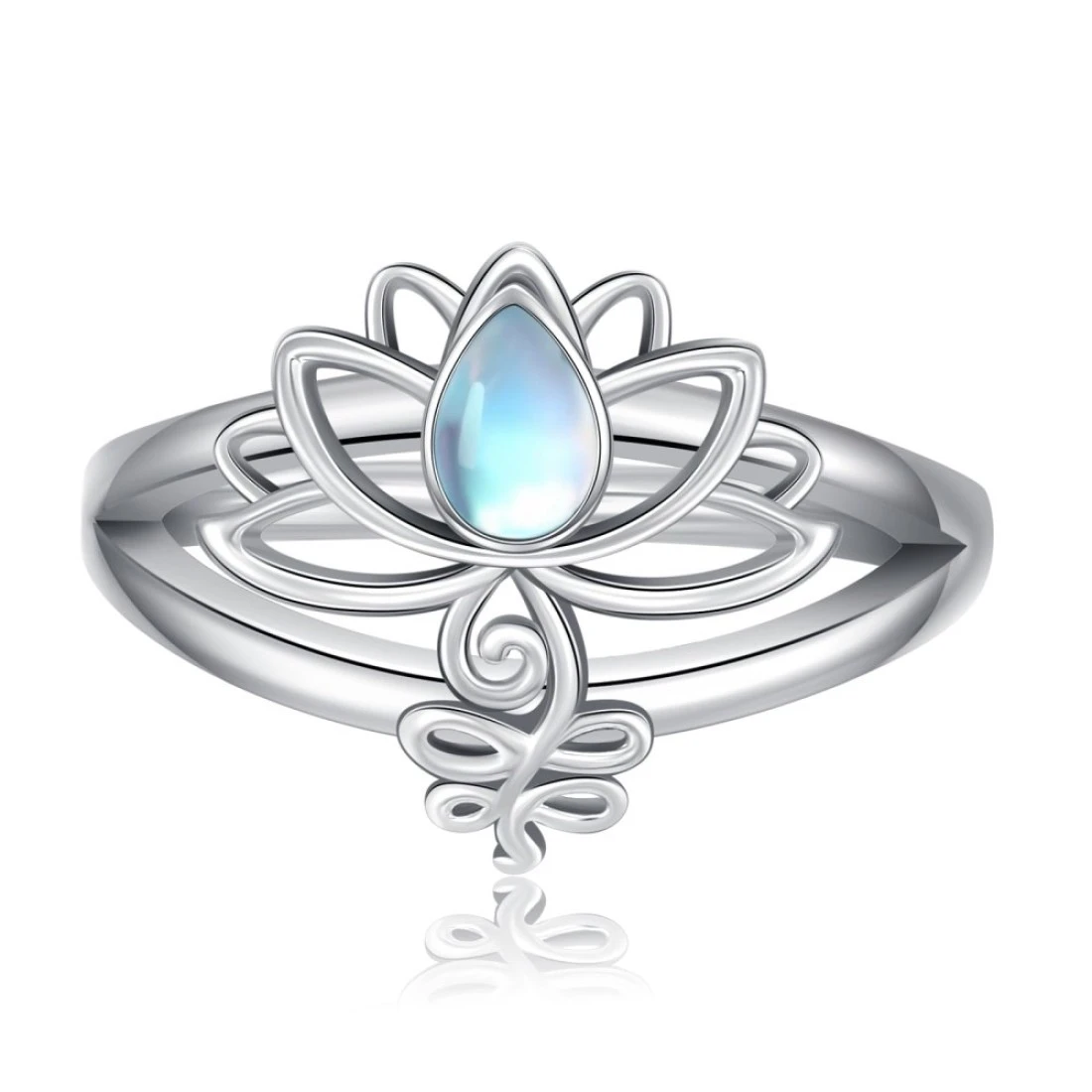 KZX Lotus Ring 925 Sterling Silver Lotus Flower Ring Lotus Ring Band Jewelry Gifts for Women Mother(Ring Size 9)