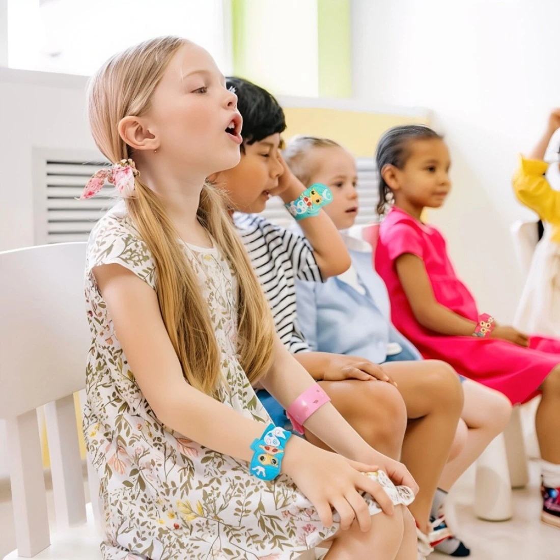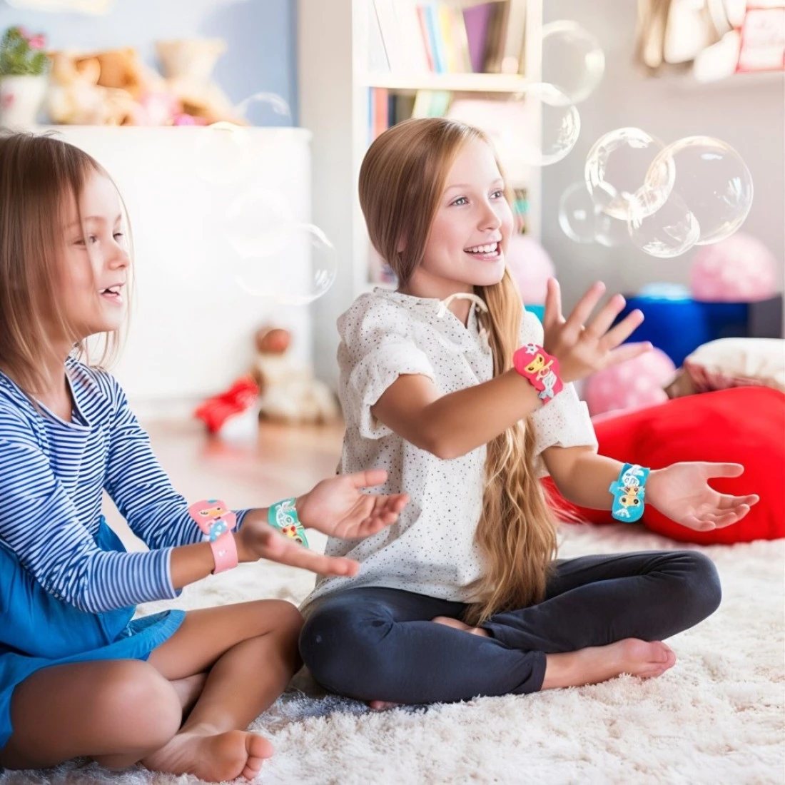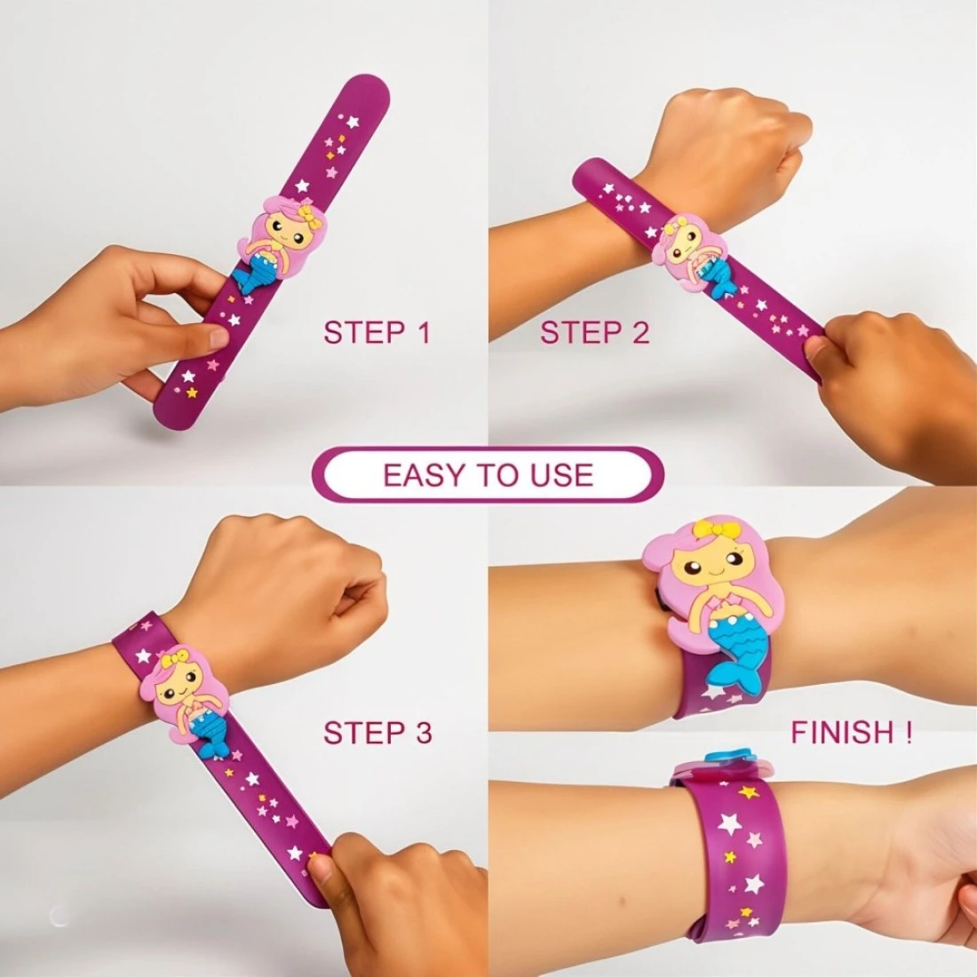 - Includes 6 colorful slap bracelets and 6 matching adjustable bracelets.