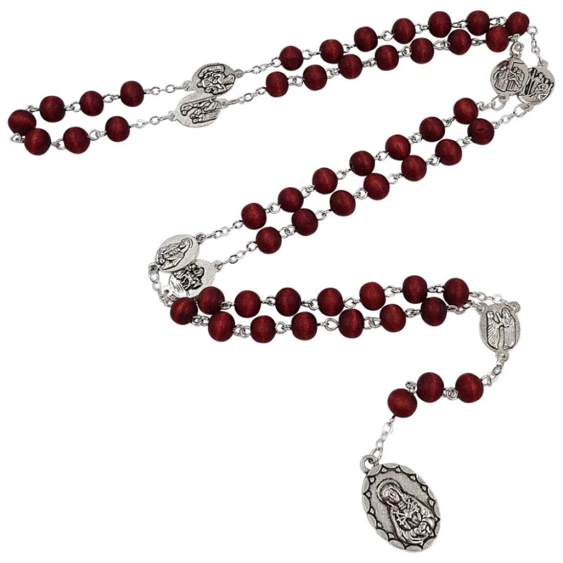 TALISMAN4U Seven Sorrows of Mary Rosary Chaplet Red Rose Scented Wooden Beads Catholic Jewelry Necklace for Women Men with Rosary Box