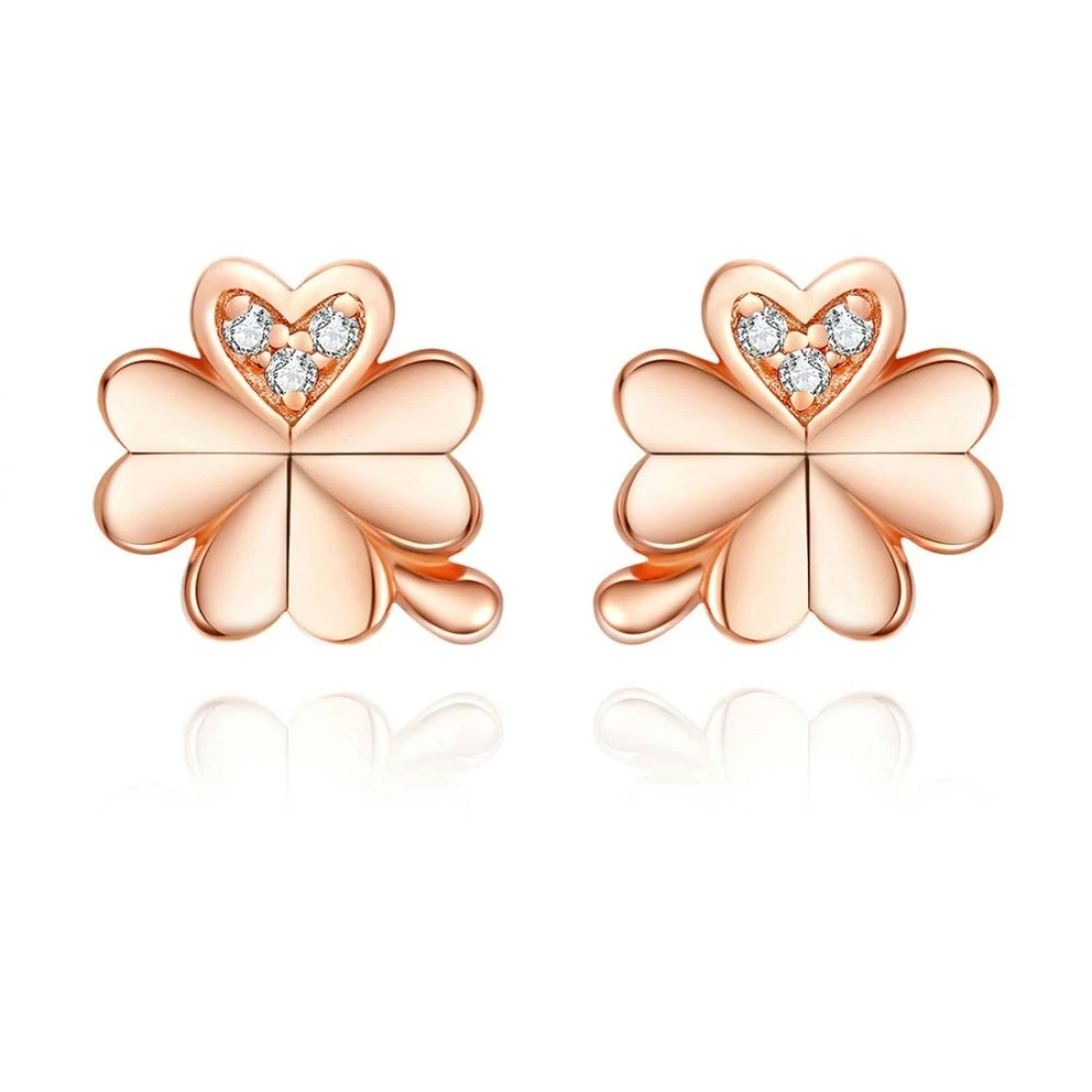 CZ Clover Cubic Zirconia 14K Rose Gold Flower Stud Earrings for Women 925 Sterling Silver Crystal Inlay Love Knot Heart Shaped 4 Leaf Clover Tragus Post Pin Hypoallergenic Earring Dainty Jewelry