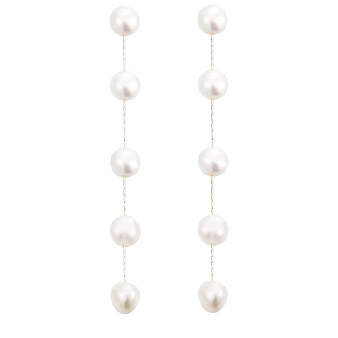 14k Silver Plated Long Pearl Drop Dangle Earrings for Women Chain Baroque Pearl Stud Jewelry for Bridal Wedding