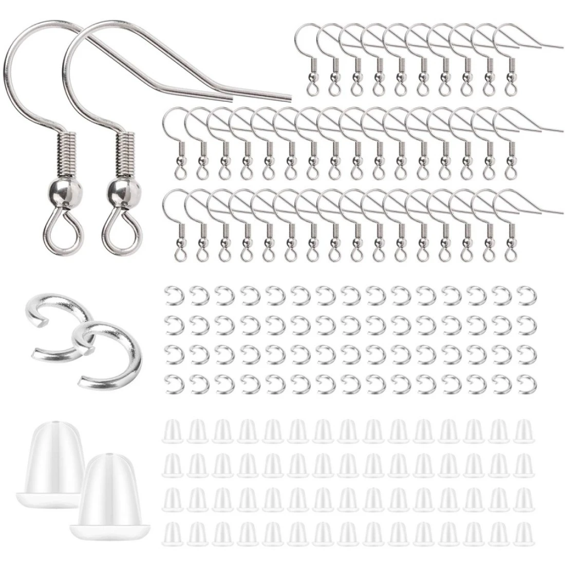 Stainless Steel Earring Hooks French Ear Wire, 600pcs Earring Making Findings Parts Jewels DIY Supplies Kits, with Silicone Earring Backs Stoppers & Open Jump Ring