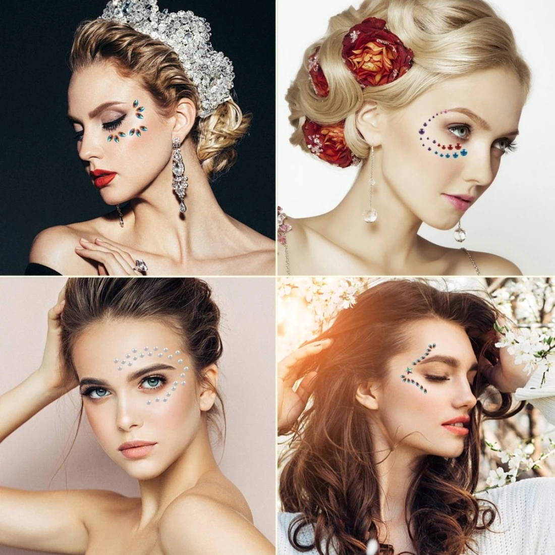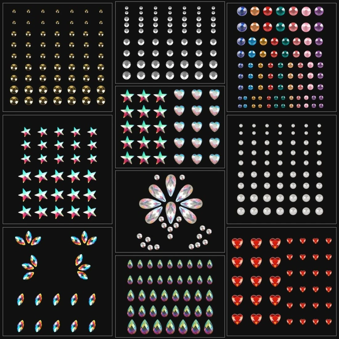 10 Sheets Eye Body Face Gems Rhinestone Stickers Self Adhesive Rhinestones Rainbow Face Gems for Women Festival Accessory and Nail Art Decorations Starlight style