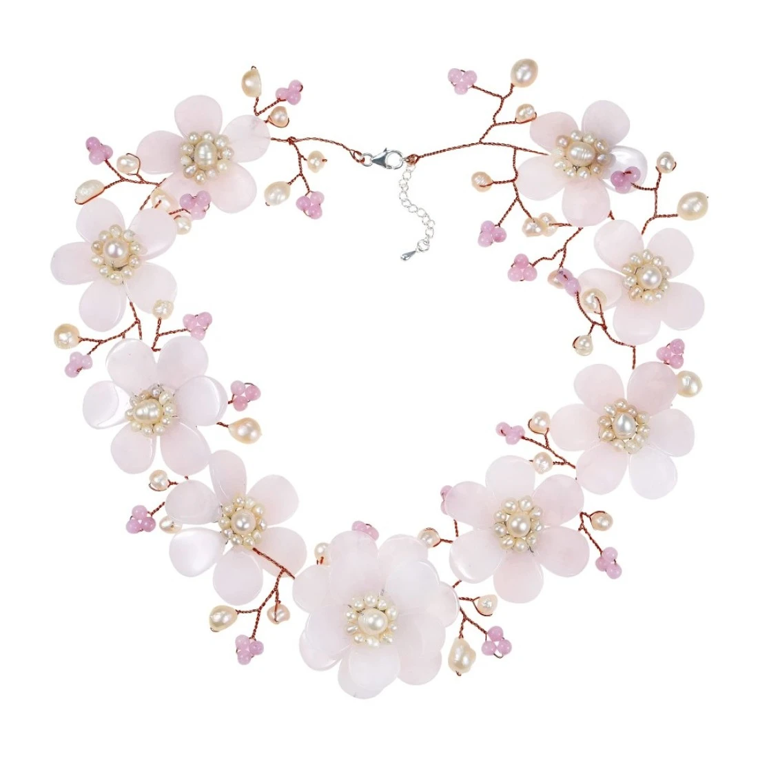 AeraVida Pink Sakura Gradual Flower .925 Sterling Silver Necklace Classic Handmade Floral Necklace for Women