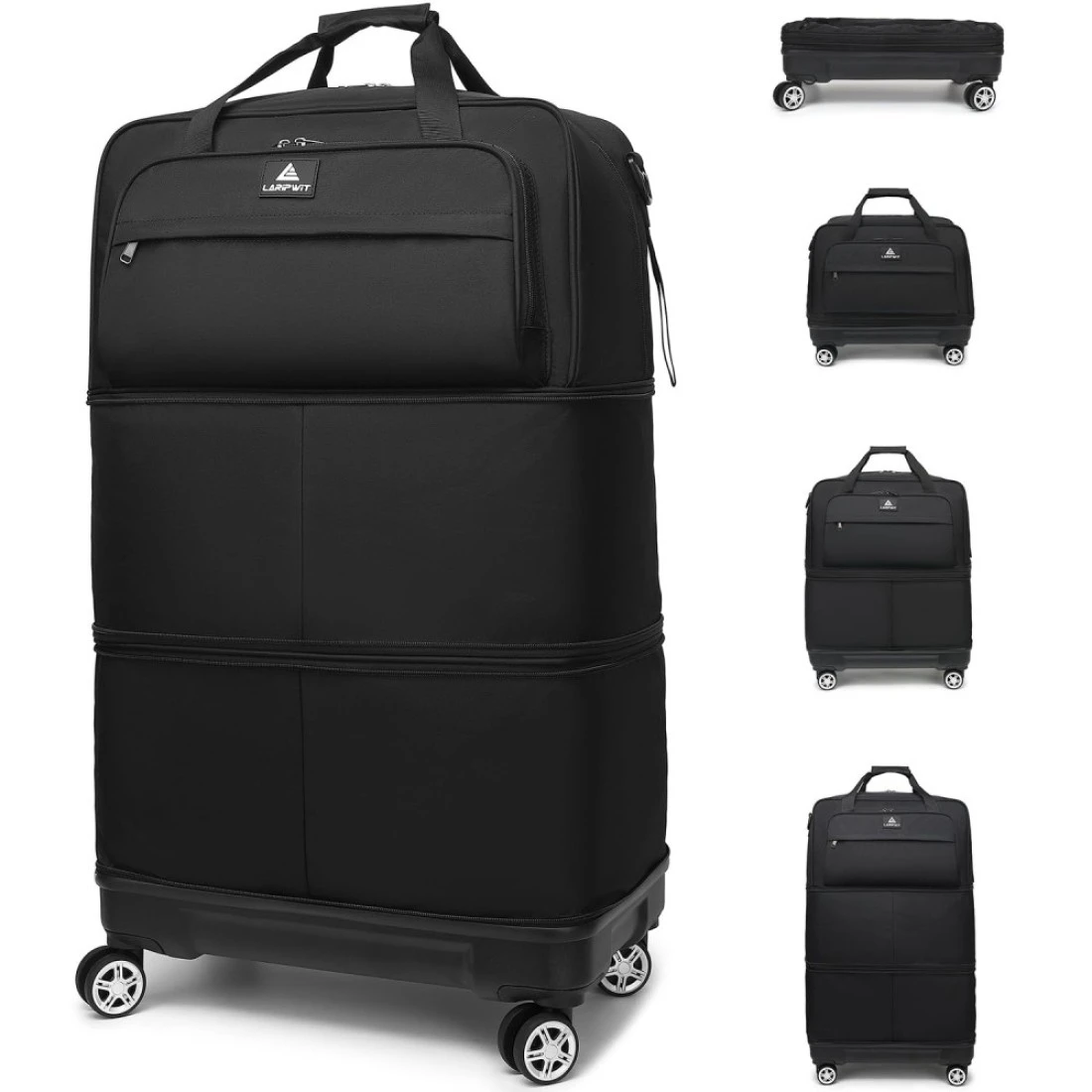 Travel Luggage Bags with Brake Spinner Wheels for Men 115L Collapsible Extra Large Travel Rolling Suitcase Lightweight Foldable Duffle Bag Expandable Soft Suitcase for Women and Not Fall Over, Black