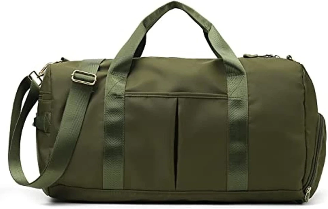 Lightweight Material :This gym duffel bag is made of light and durable Oxford cloth, internal polyester lining with PVC waterproof compartment. Metal accessories and precision wiring are used at the connection to prevent break and tear. Functional Division : Our duffel bag includes 3 main functional partitions.1 large space main pouch,1 fully waterproof wet pocket(for wet swim wear/ sweat gym clothes, socks and towel),1 independent shoe compartment(fit 13' sneakers). Suitable Dimension: SIZE of 19.3" X 9.44" X 10.24"(L x W x H).Could carry 2-3 sets of clothes, essential cosmetics and 1-2 pairs of shoes. Great for use as a dry wet separated sports bag, gym bag, beach bag, swimming bag, weekender bag, overnight bag. Travel Essential Bags : There is a strap on the back of the duffle bag that can be easily placed on your trolley case. During the journey, it can move firmly on the suitcase without burdening you. It is suitable for carrying clothes that you need when you board the plane. Wide Application : This roomy bag can hold a lot of things, and everything needed for the gym and short-term travel can be stored in an orderly manner. It is a great bag for workout, travel, sports activity, tennis, basketball, yoga, fishing, hunting, camping, hiking and many outdoor activities.