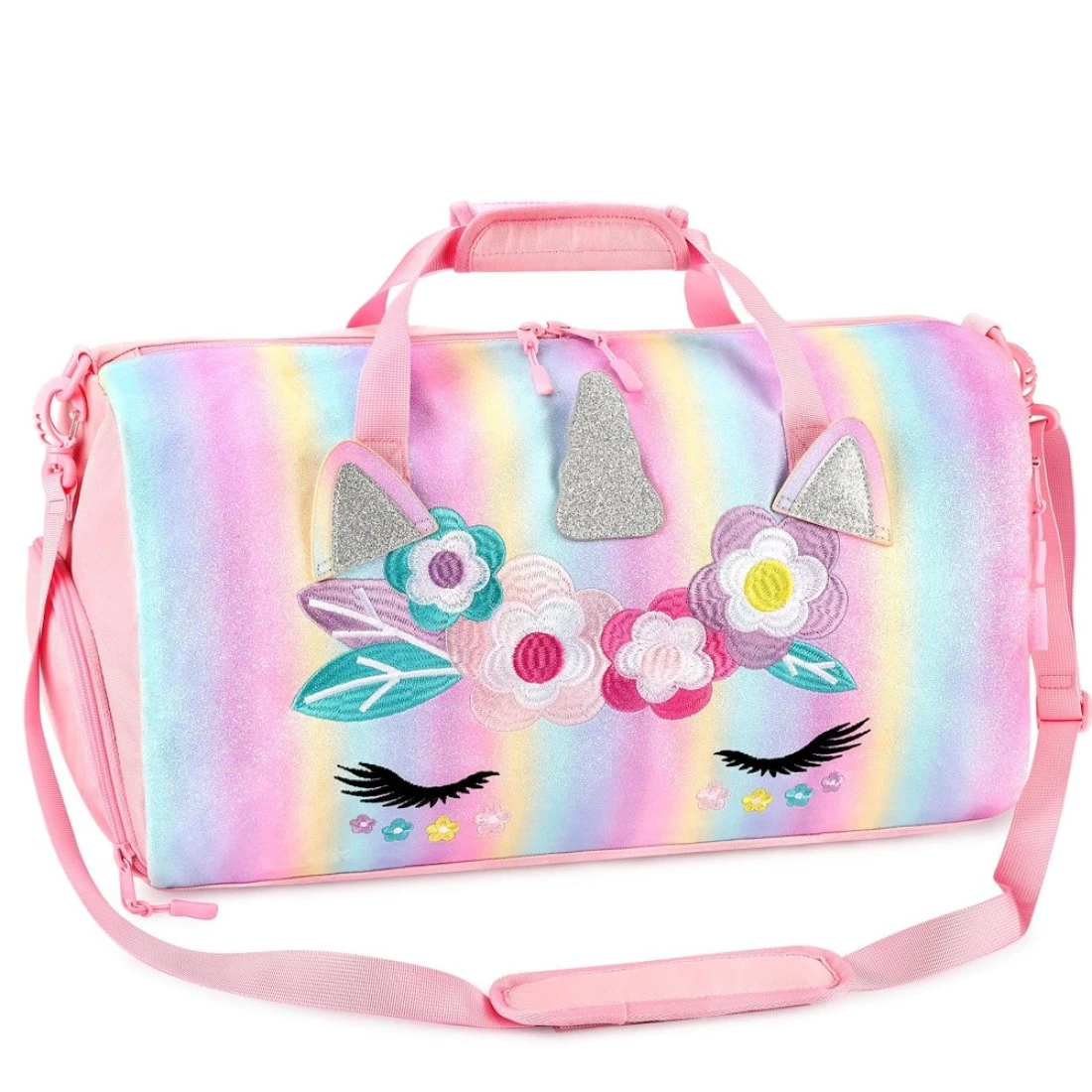mibasies Dance Bag for Girls Duffle Bag Kids Overnight Travel Sleepover Bags with Shoes Compartment Large