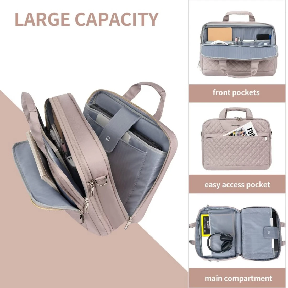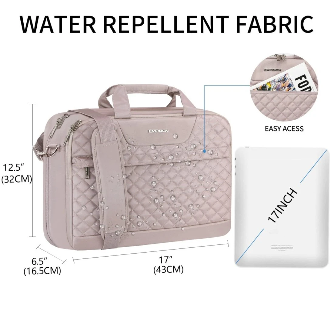 EMPSIGN 173 Inch Laptop Bag Large Capacity Expandable Briefcase for Women Men Business Office WaterRepellent Laptop Case Travel Computer Bag with RFID Pockets Dusty Pink