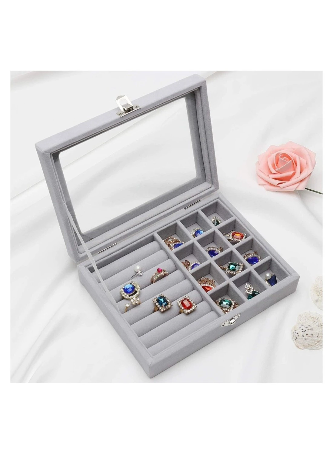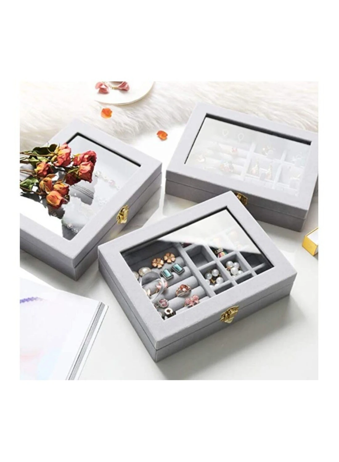 Our design combines the ring and earring organizer, which are customized for you in all aspects. The transparent glass cover can clearly display your jewelry while preventing dust and oxidation.