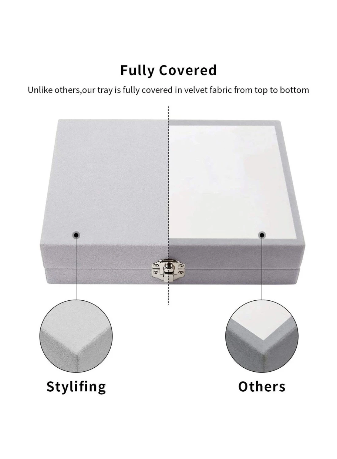 2 في 1 صندوق مجوهرات مخملي حلقة القرط حامل مُنظِم قابل للتكديس عرض عرض قابل للقفل مجوهرات تخزين صينية إكسسوار منظم هدايا للفتيات والنساء