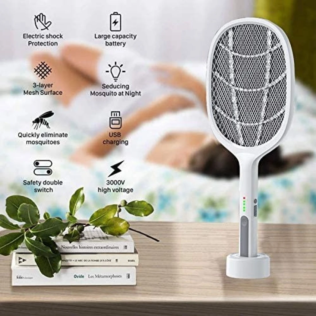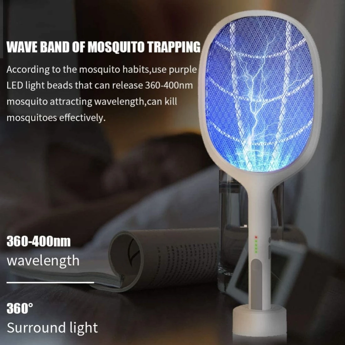 <p>【2 in 1 Rechargeable bug zapper racket 】: 2021 New Product! Electric Zapper Lamp & Racket 2 IN 1, Hands Free! You will get rid of insects troubles immediately with our powerful High-Volt electric bug zapper.</p><p>【Powerful Pest Control】: Featuring a 3,000-volt grid, our electric zapper is a modern take on traditional swatters. Instantly eliminating mosquitos, flies and other pests in a single swing, it provides peace of mind and reliable results.</p><p>【Quick and Convenient Charging】: Please use the attached cable to plug the racket into any USB device. The built-in lithium battery is powerful and efficient, providing 10,000 zaps on a single charge.</p><p>【High Safety】:A triple layer safety mesh offers protection from users accidently zapping themselves when the racket is electrified.</p><p>【BUILT-IN 650mAh ELECTRIC MOSQUITO ZAPPER LAMP】: Built-In Mosquito lamp, Just put it on the base and turn it on, Mosquitoes will fly to it and be killed! According to the mosquito habits, use purple light beads that can release 395mm mosquito habit wavelength, and diamond innenet with strong light transmission, can zap mosquitoes effectively.</p><p><br></p>
