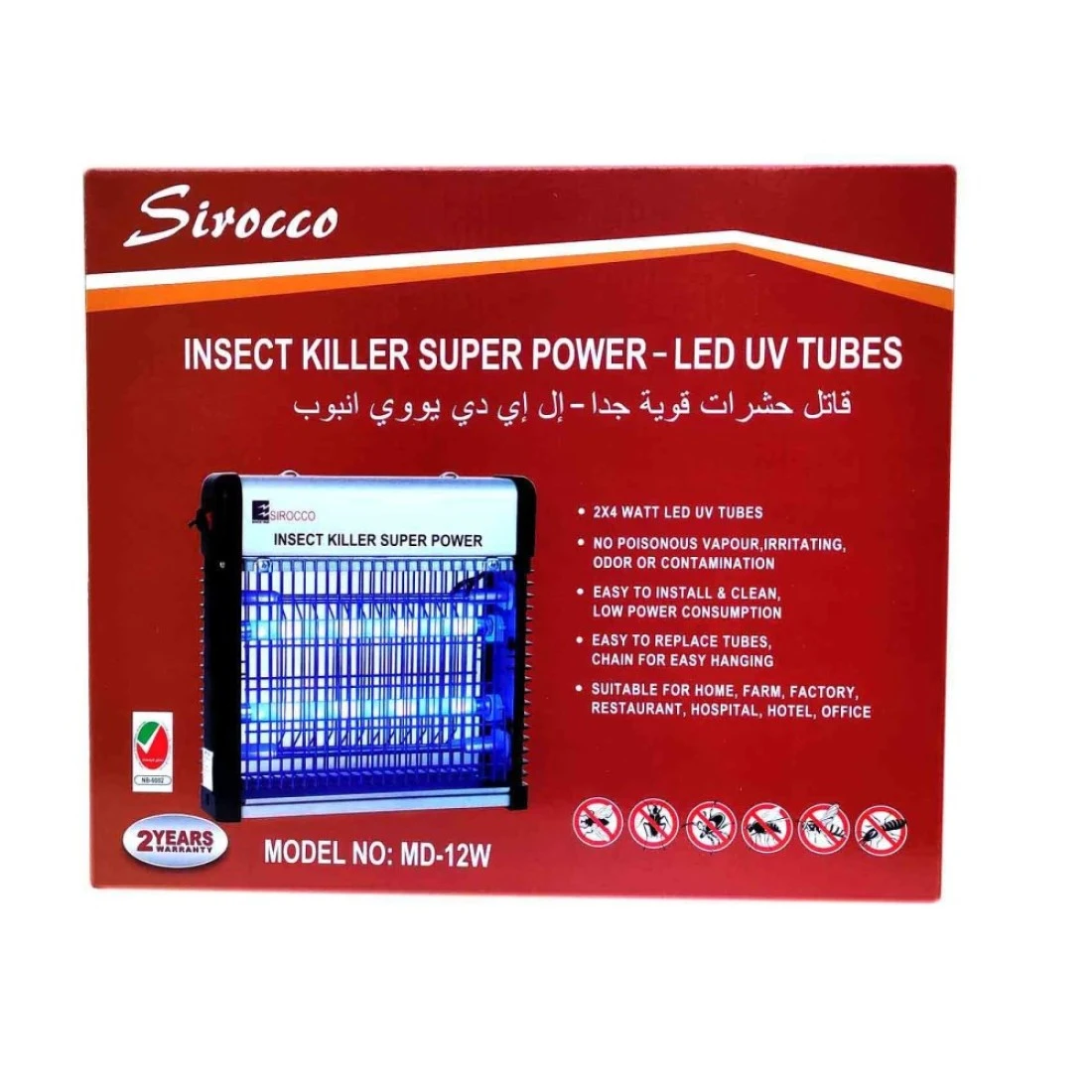 سيروكو قاتل الحشرات بقوة فائقة مع أنابيب LED بالأشعة فوق البنفسجية بقدرة 12 واط - أبيض MD-12W