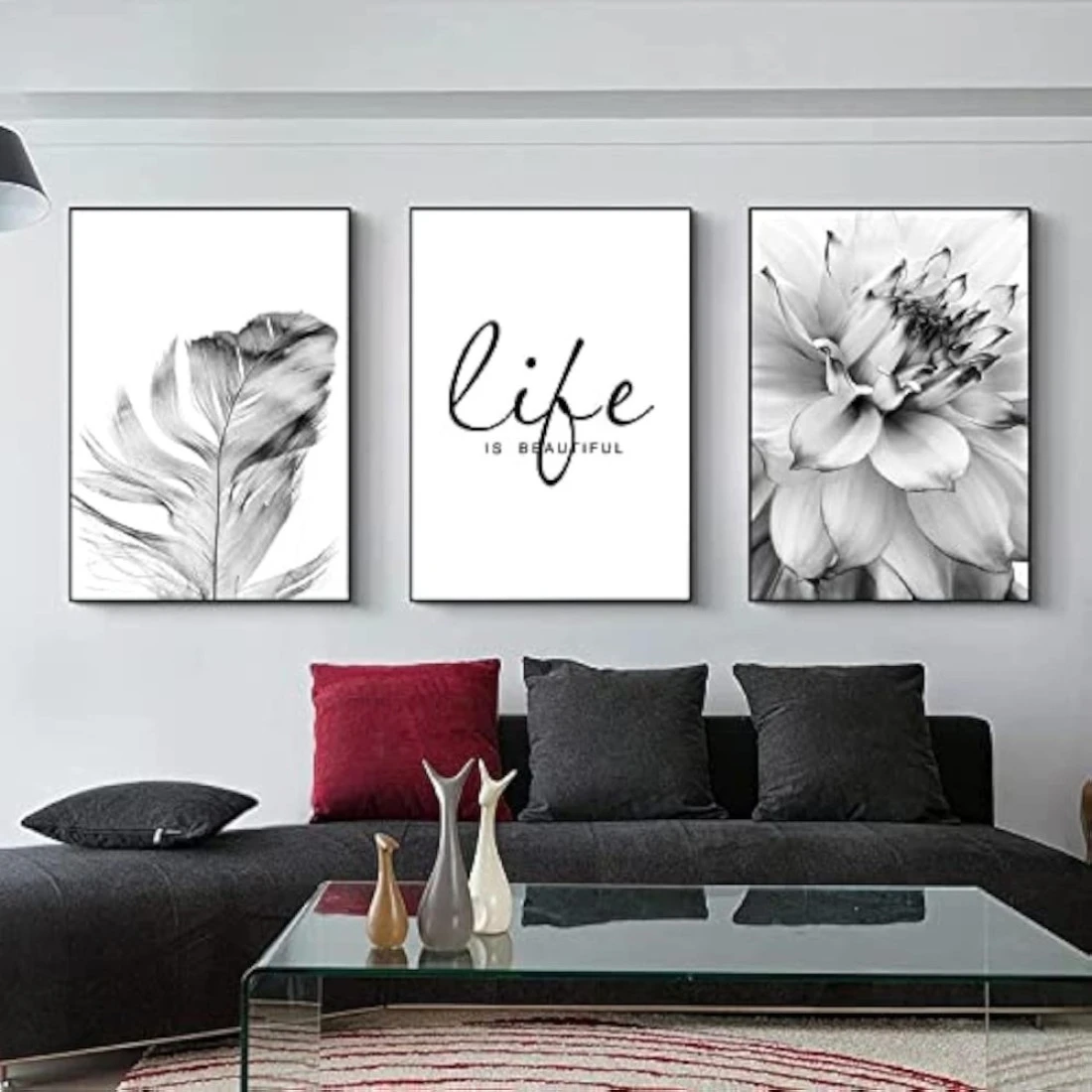 3 Pack Wall Art Prints Dandelion flowers black and white feathers Canvas Poster Wall Art Decor Print Picture Paintings for Living Room Decoration, Unframe (A,16x20 inch)