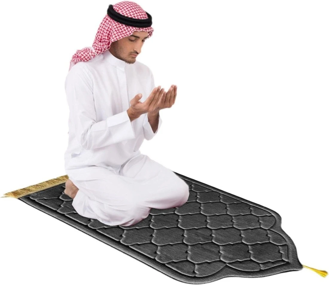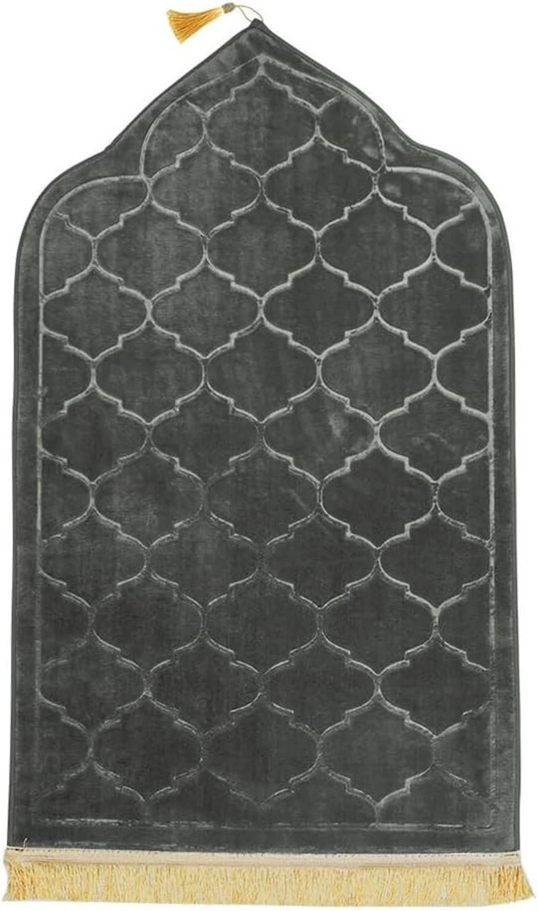 Embossed Dome Style Prayer Mat Grey Anti-Slip Velvet Top Islamic Prayer Mat New Design Sajadah Padded Prayer Rug for Men Women Eid Gift Ramadan 70x110 cm
