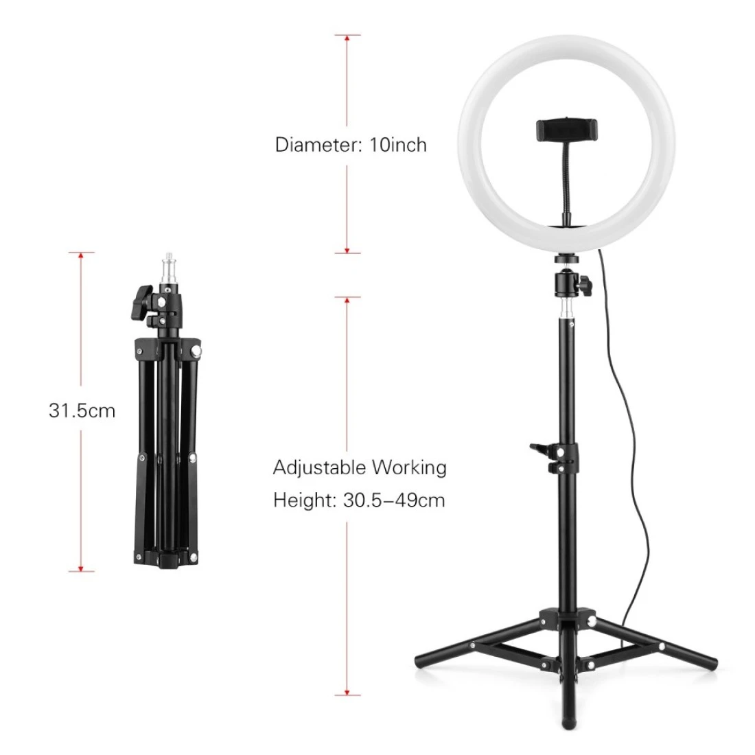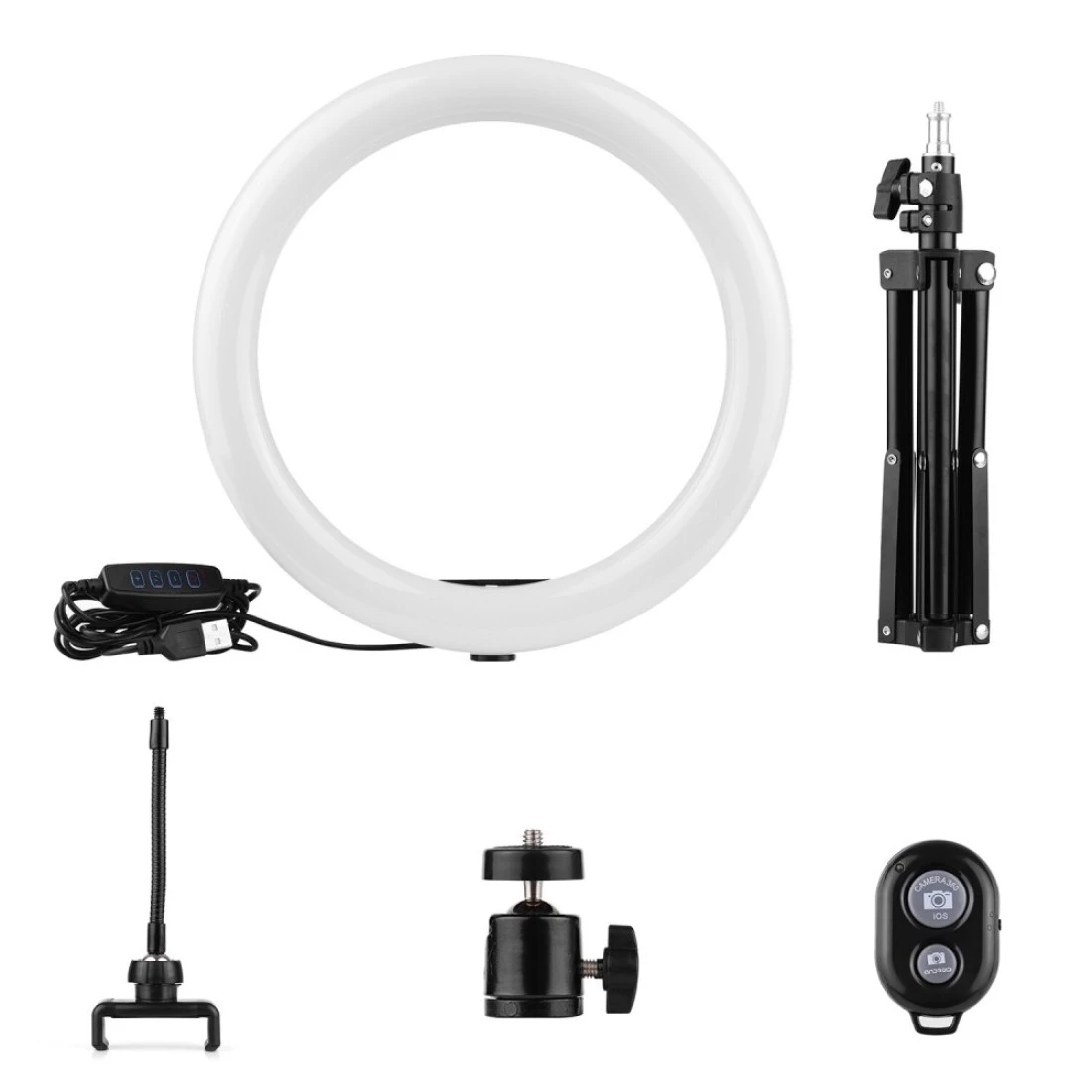 مجموعة بث الفيديو من أندور مع مصباح ال إي دي 10 بوصة لرأس الكاميرا عن بعد مع حامل للجوال