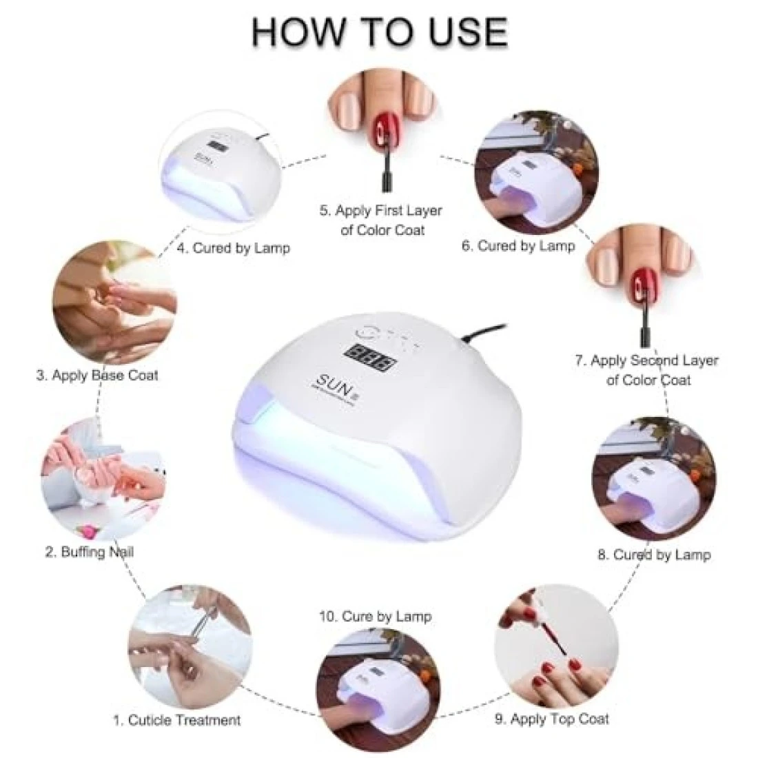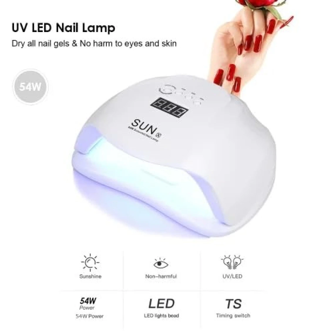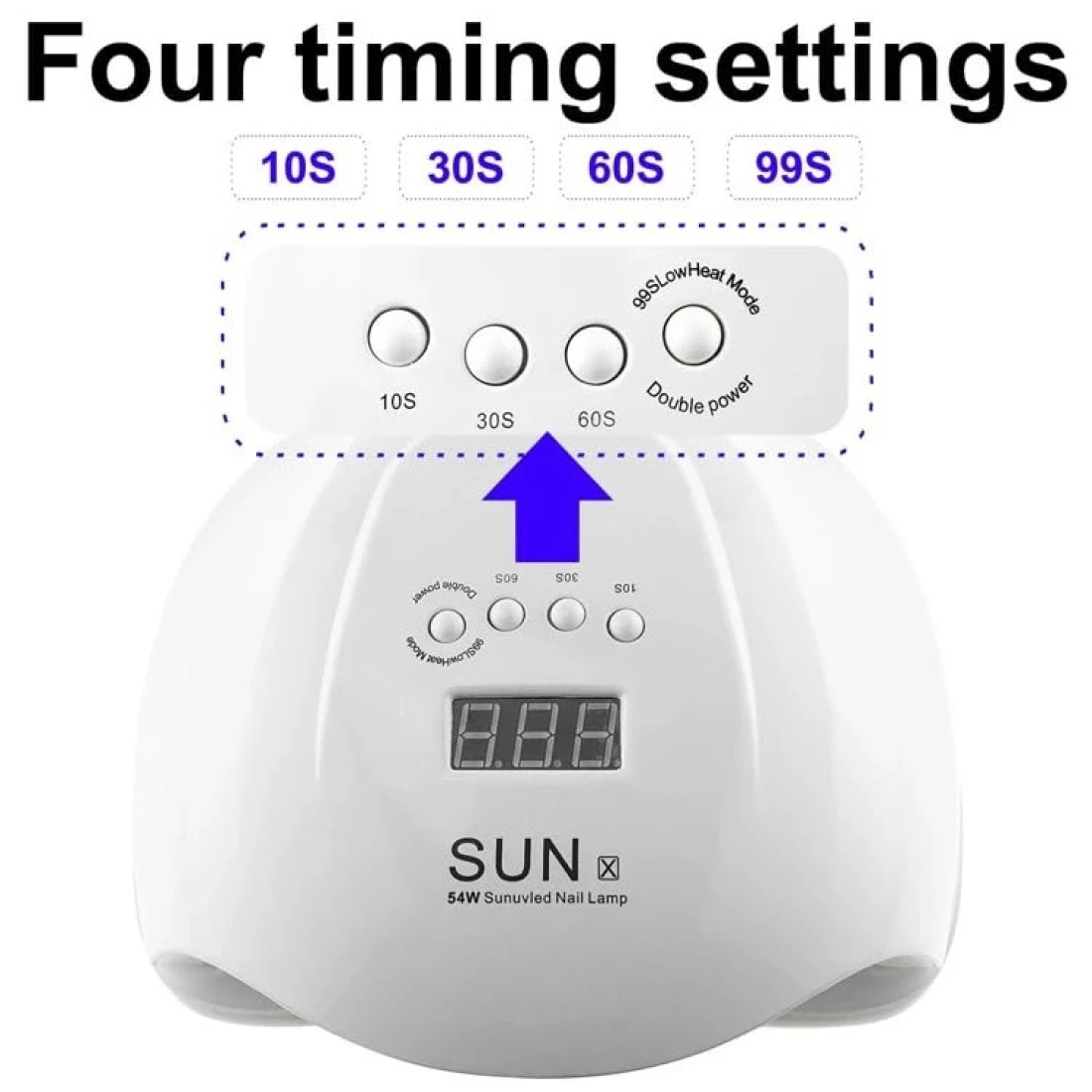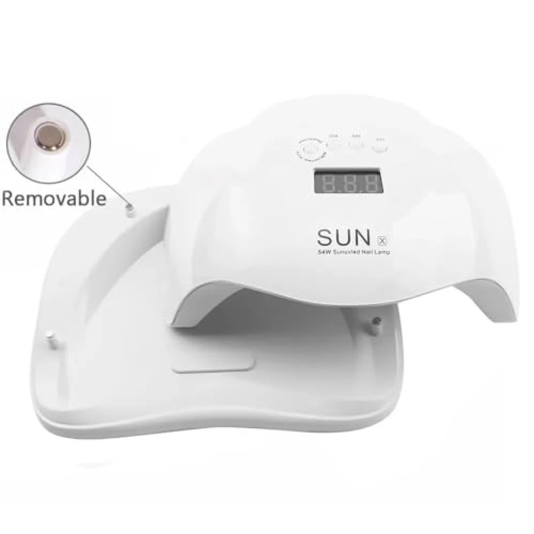 Global Fashion 2-in-1 UV/LED Nail Dryer Lamp - 54W, Professional Gel Nail Dryer for Manicure & Pedicure, Smart Sensor, 4 Timer Settings, Painless Curing, Spacious Design - SUN X (White)
