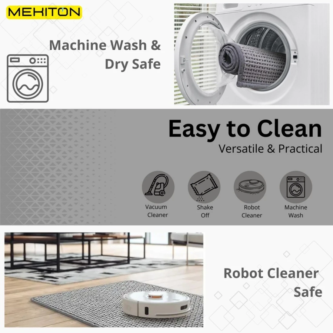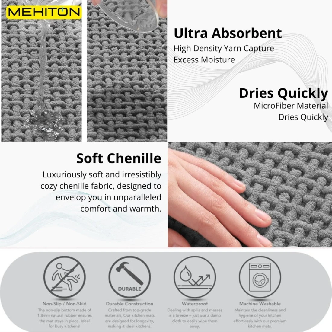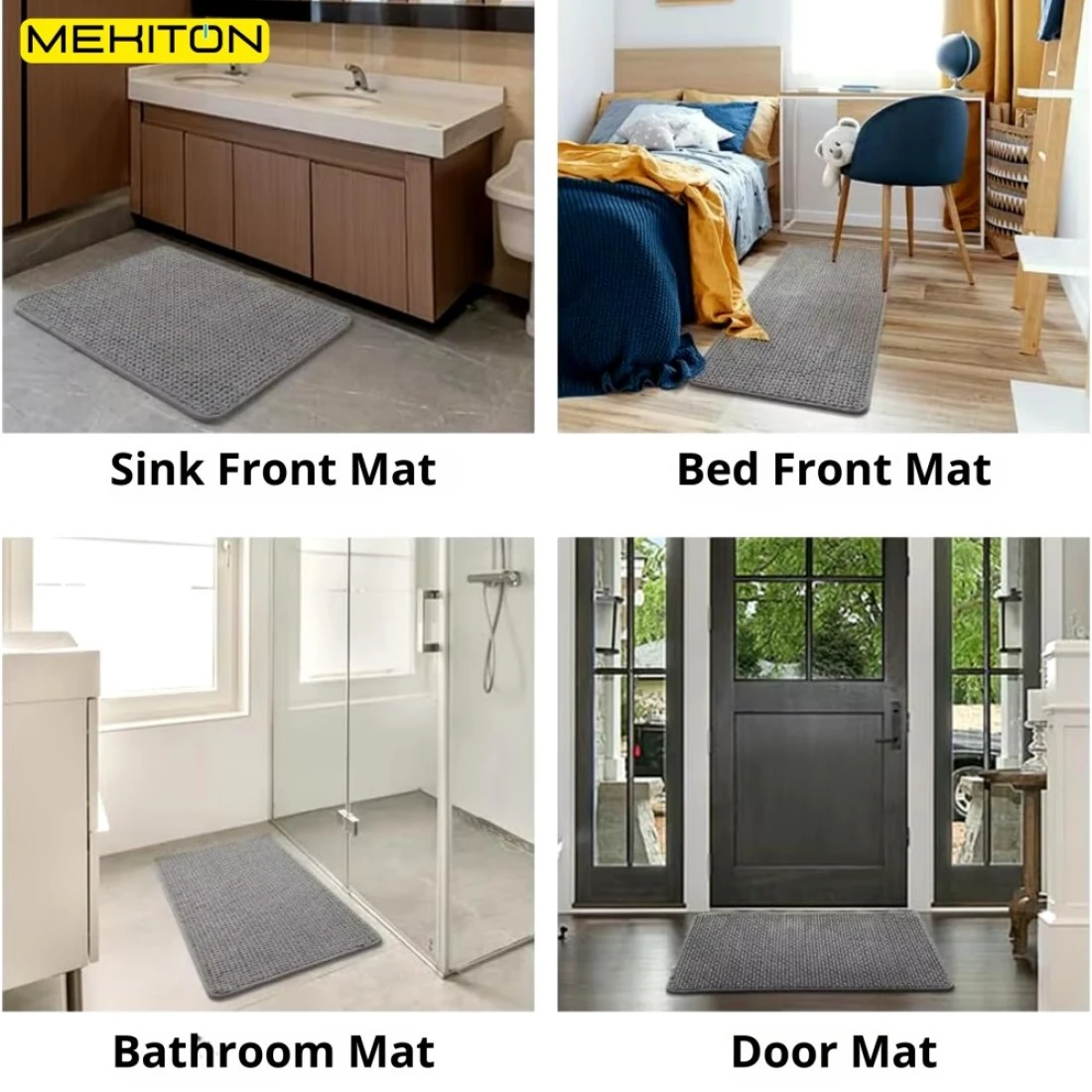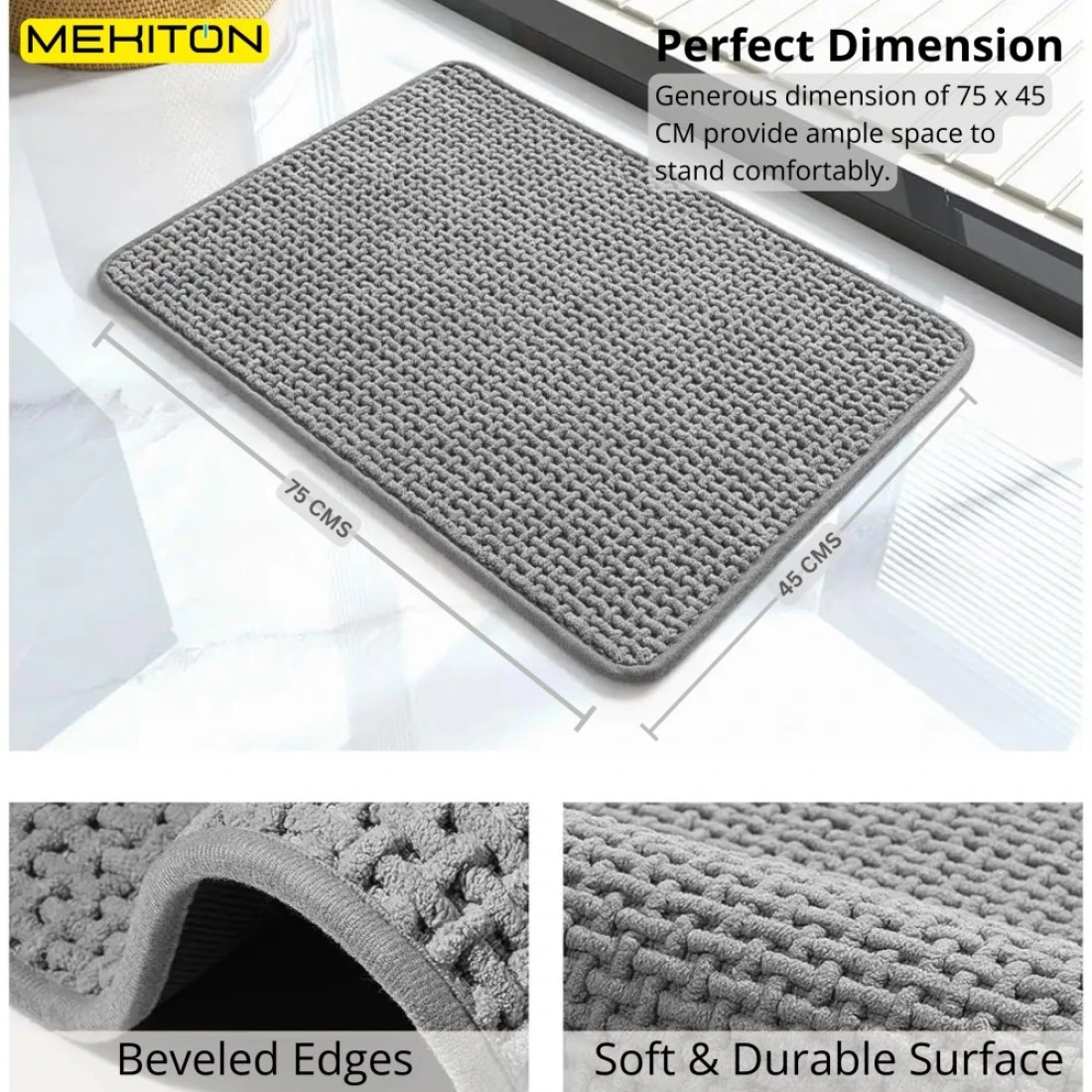 MEKITON - Premium Bathroom and Door Mat - Super Absorbent, Non-Slip, Quick Drying, Soft Plush Surface, Ideal for Entryways, Kitchens, and Bathrooms - 75 x 45 cms (Gray)