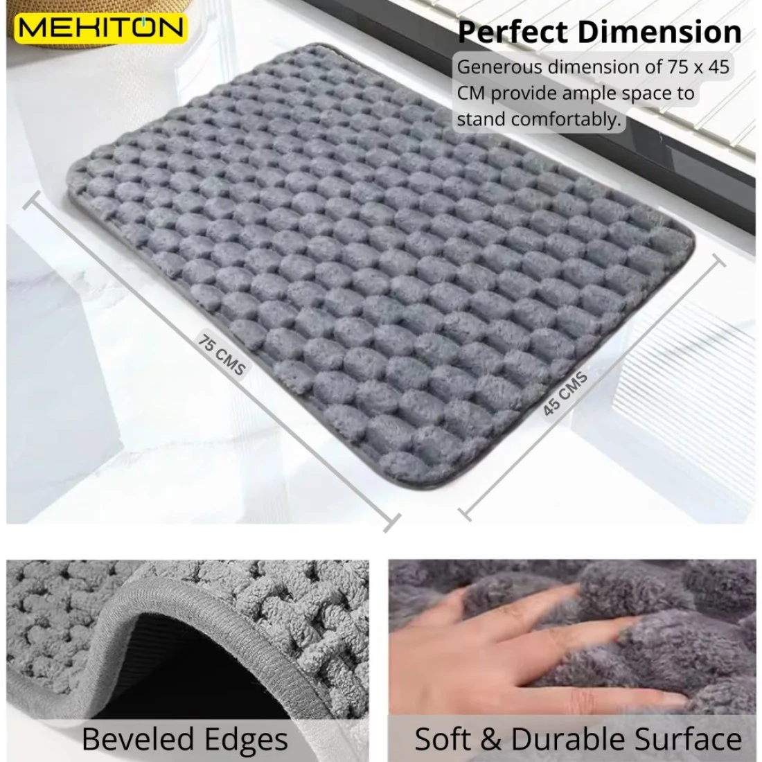 MEKITON - Premium Bathroom and Door Mat - Super Absorbent, Non-Slip, Quick Drying, Soft Plush Surface, Ideal for Entryways, Kitchens, and Bathrooms - 75 x 45 cms (Gray)