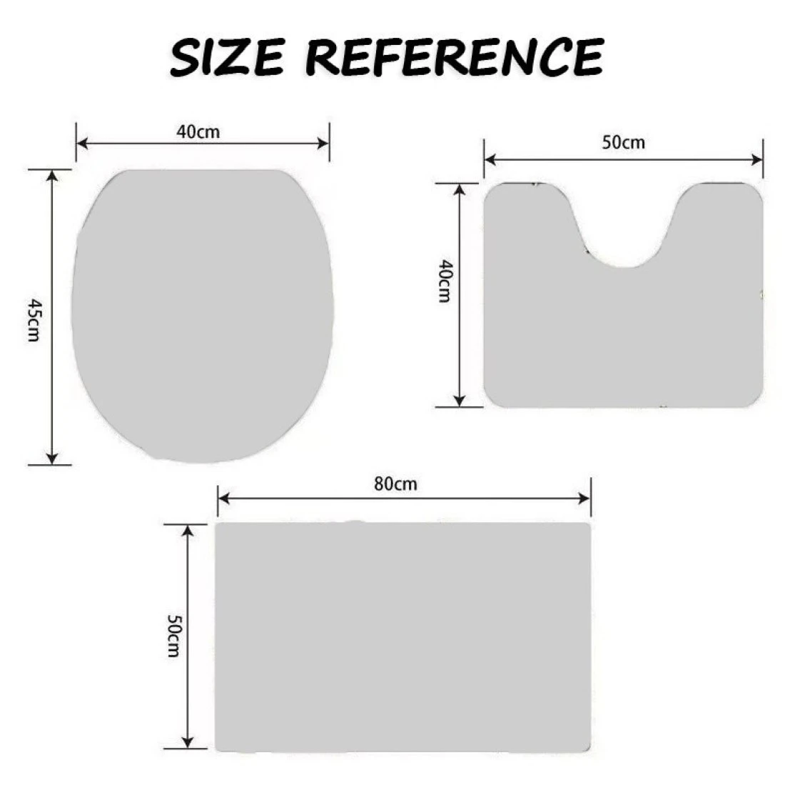 < b >This 3 PCS Set Contains 1 Bath Mat 1 Contour Mat And 1 Toilet Lid Cover< b >The Size Of Rectangular Mat Is (50×80CM) U Shape Mat (50×40CM) And Toilet Lid Cover Size is (40×45CM) Which Can Fit Around Most Toilets< b >It’s Very Durable And Gives More Comfort Even In Barefoot< b >Beautiful Design Gives Your Bathroom New Look< b >This Bathroom Rugs Set Contain Non Slip PVC Rubber Dots Texture In Backside For Preventing Injuries Caused By Slipping Especially Helpful For Old People And Childrens< b >