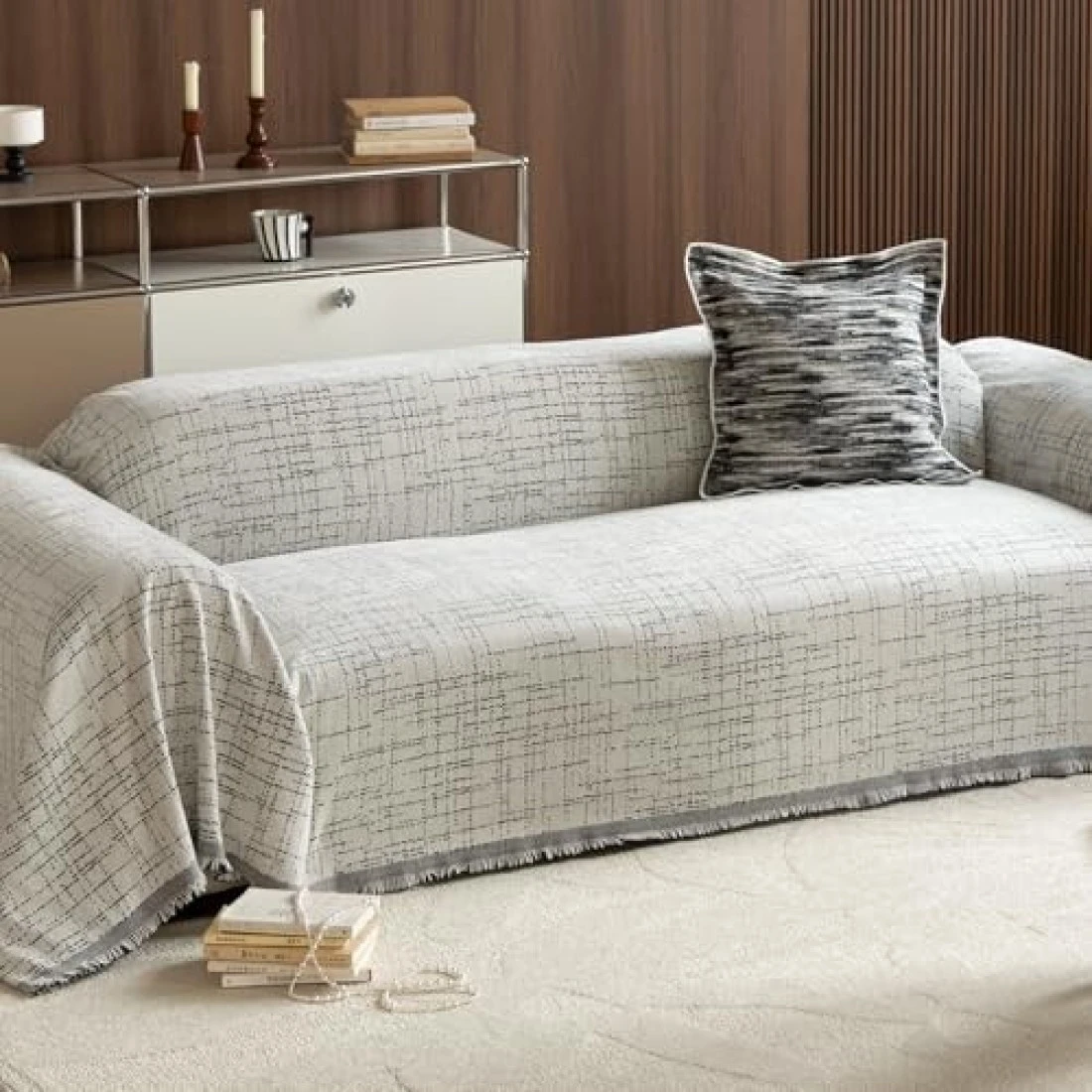 Roxooze Couch Cover 2 Cushion Sofa Cover for Dogs Washable Grey Simple Stripes Couch Cover Blanket Protector for Loveseat Sectional Sofa l Shape Chenille Couch Slipcover for Kids, 71"x118