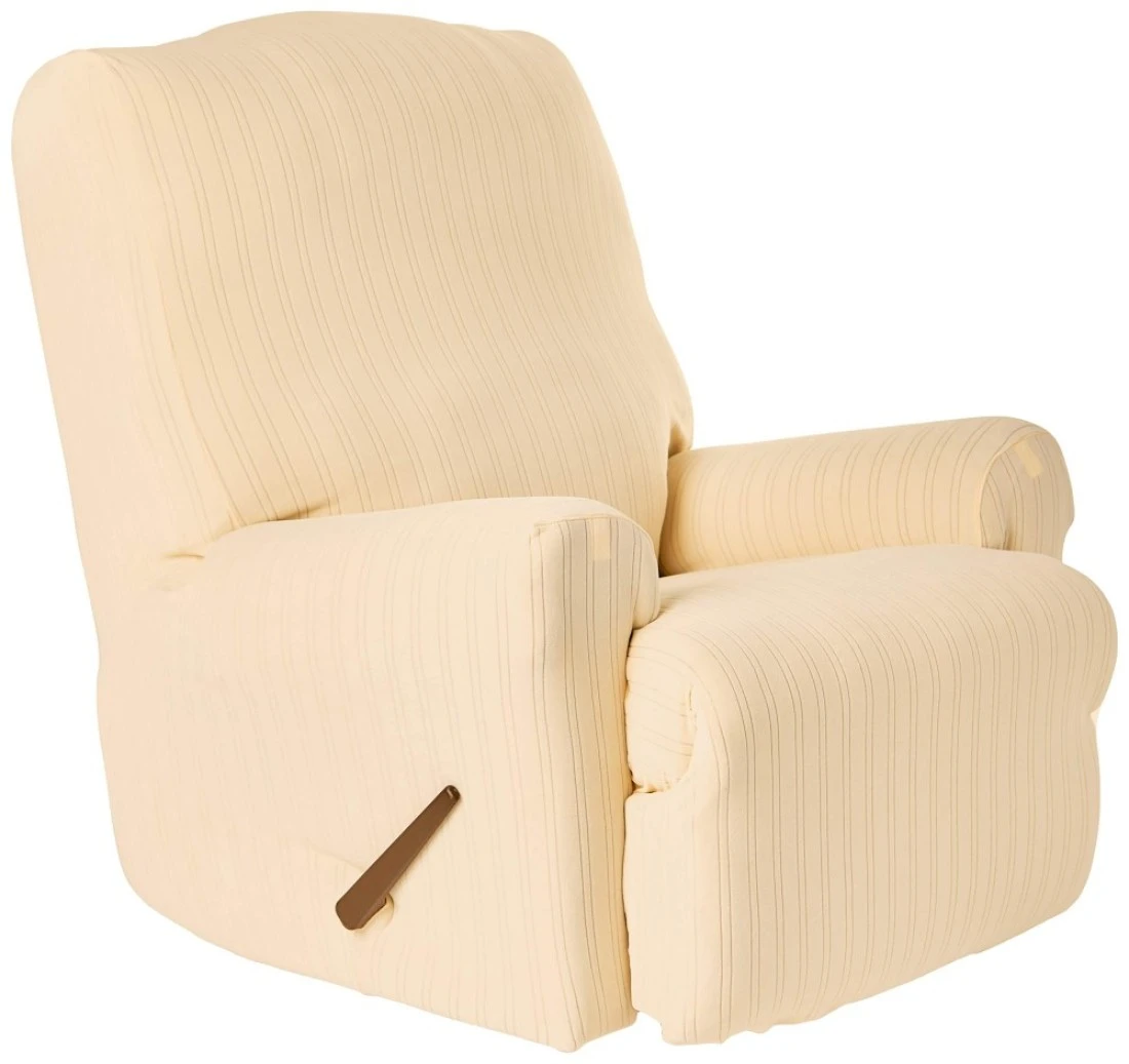SureFit SF39058 Stretch Pinstripe Recliner Slipcover One Piece Form Fit 94 Polyester 6 Spandex Machine Washable Cream