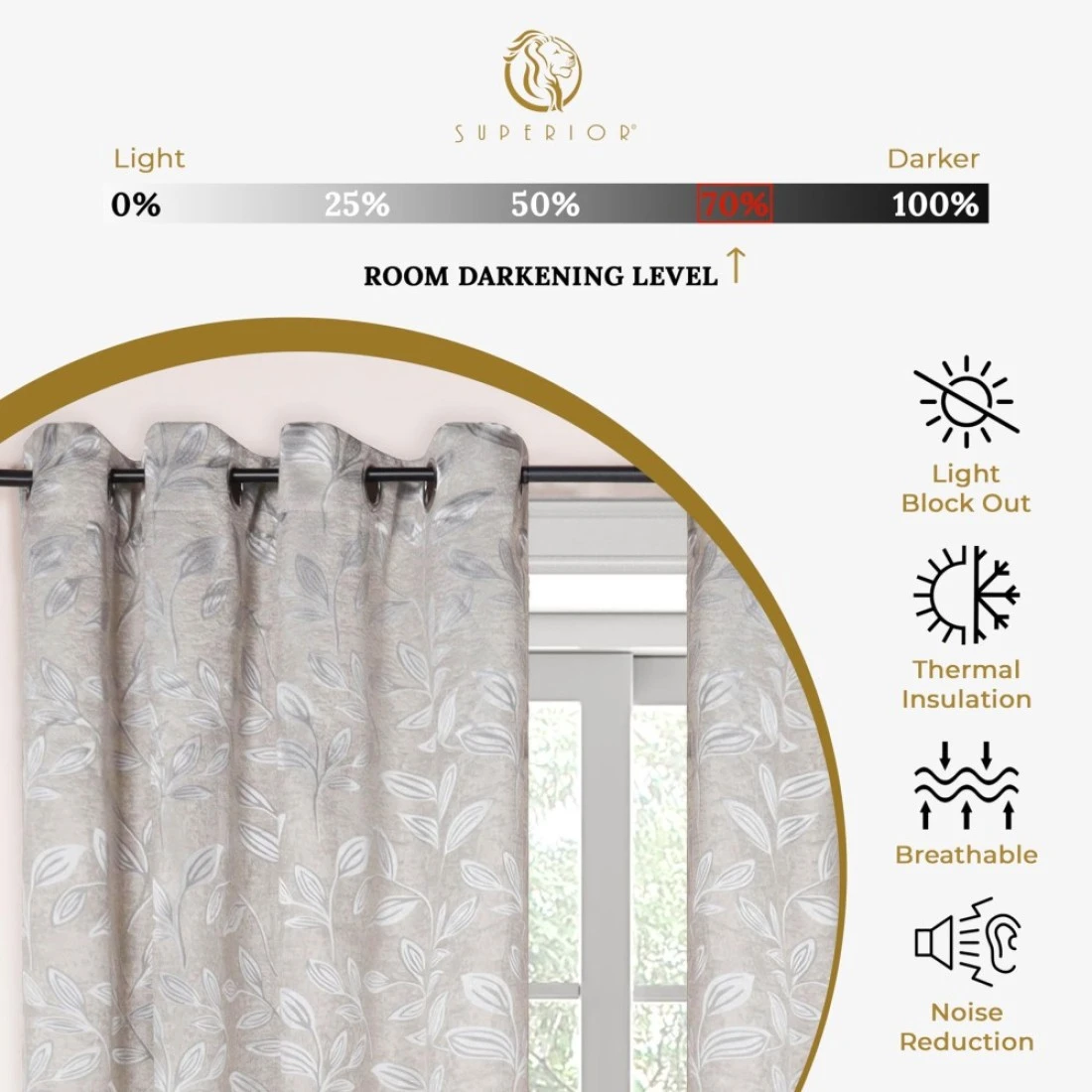 Superior Blackout Curtains Room Darkening Window Accent for Bedroom Sun Blocking Thermal Modern Bohemian Curtains Leaves Collection Set of 2 Panels Rod Pocket 52 in x 120 in Ivory