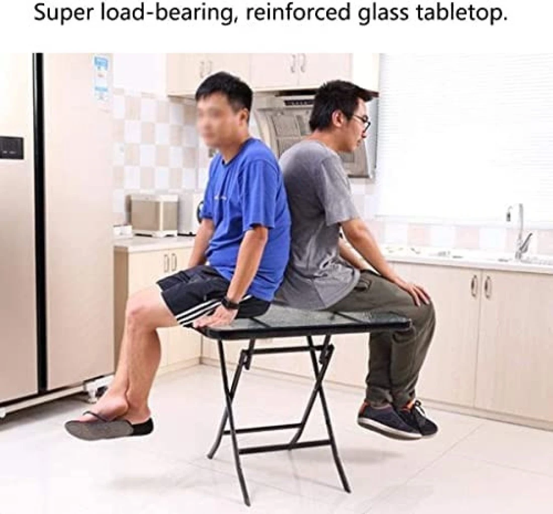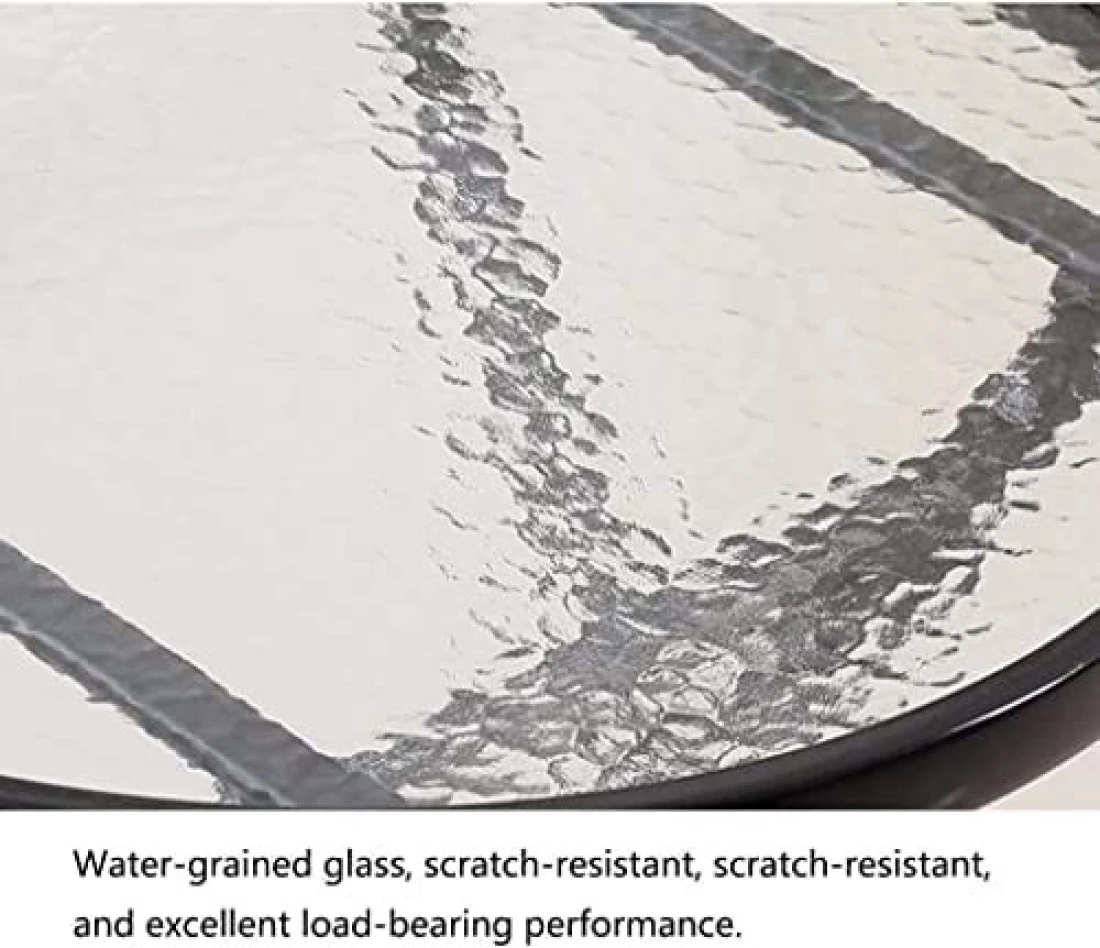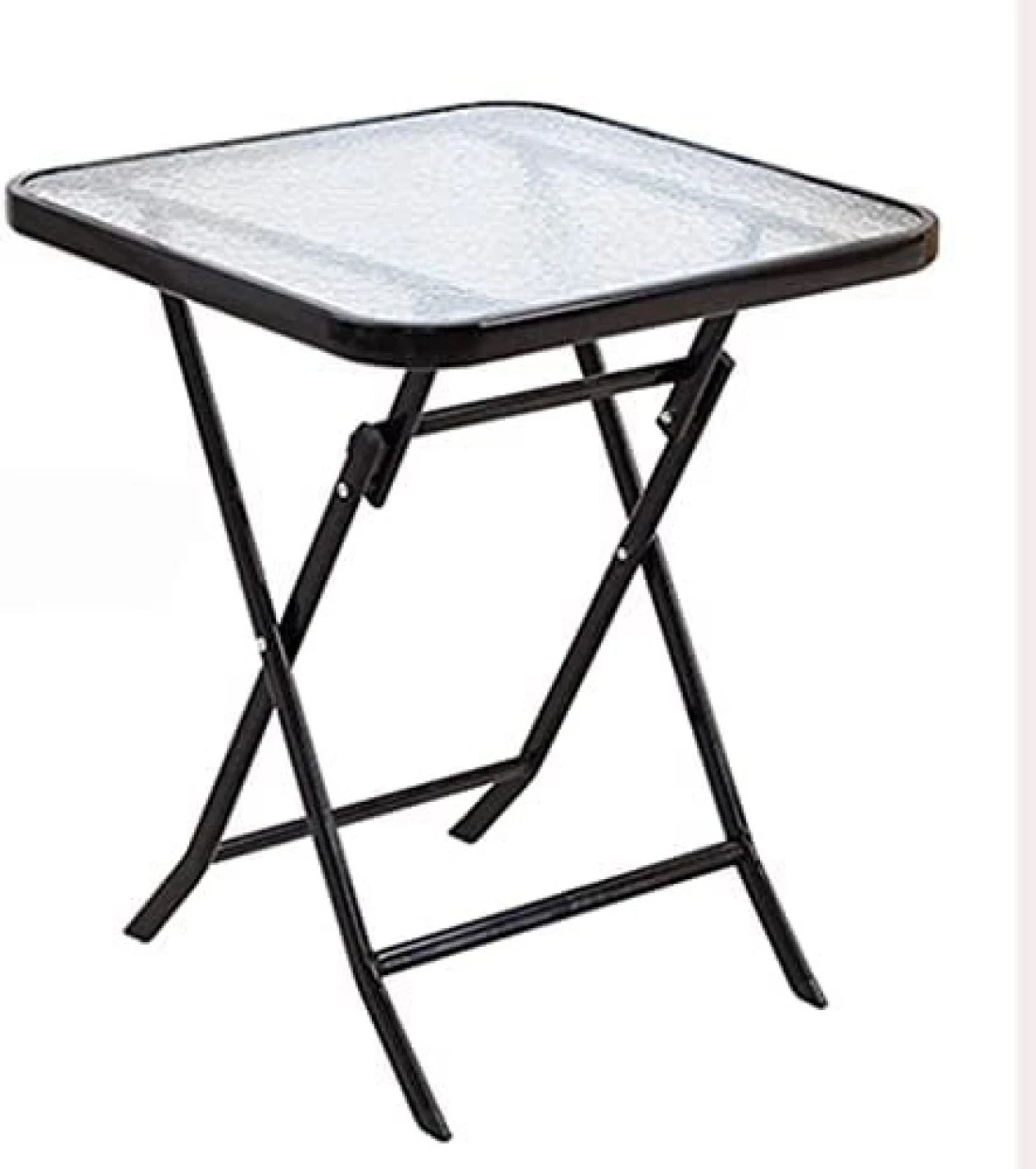 Yulan Iron Retro Outdoor Indoor Simple Folding Table Small Tempered Corrugated Glass, Transparent Ripple, Square, 629