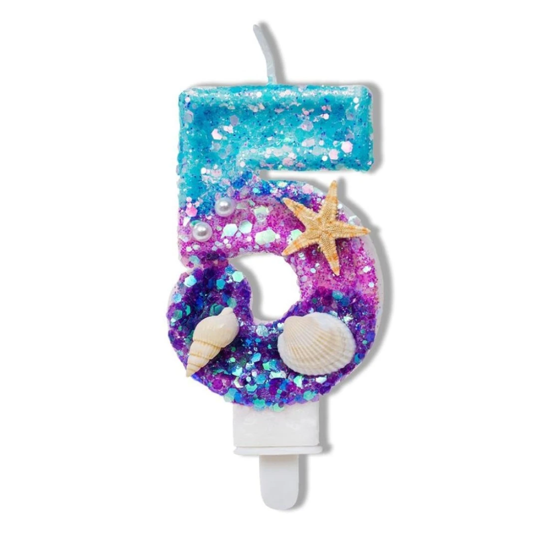 Number 5 Candle Blue Purple Gradient Sequin Birthday Candle 5 for Cake Great for a Mermaid or Under The Sea Party