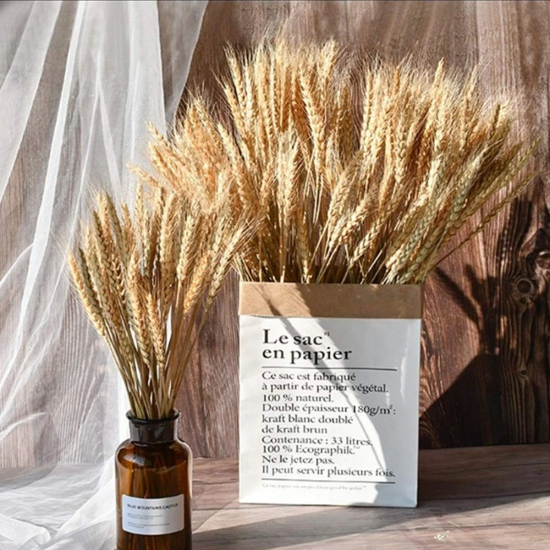 100 Stems Dried Wheat Stalks Dried Natural Ear of Wheat Grain Flowers for Home Dining Table Flower Arrangement Art Wedding Decoration