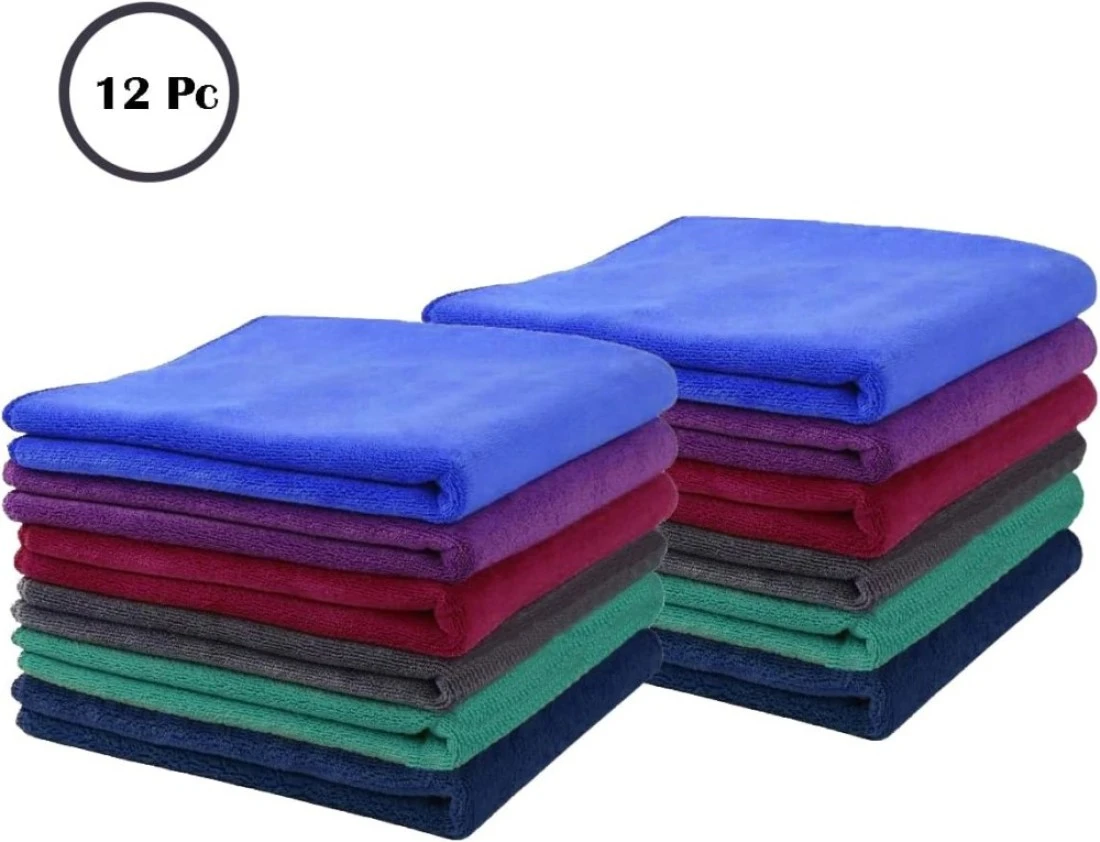 Fabienne 12-PC Microfiber Cleaning Towel Set 30x30cm Wash clothes Durable & Washable 330 GSM Cleaning Cloths for Kitchen, Bathroom Cleaning All Purpose Microfiber Towel Multicolour