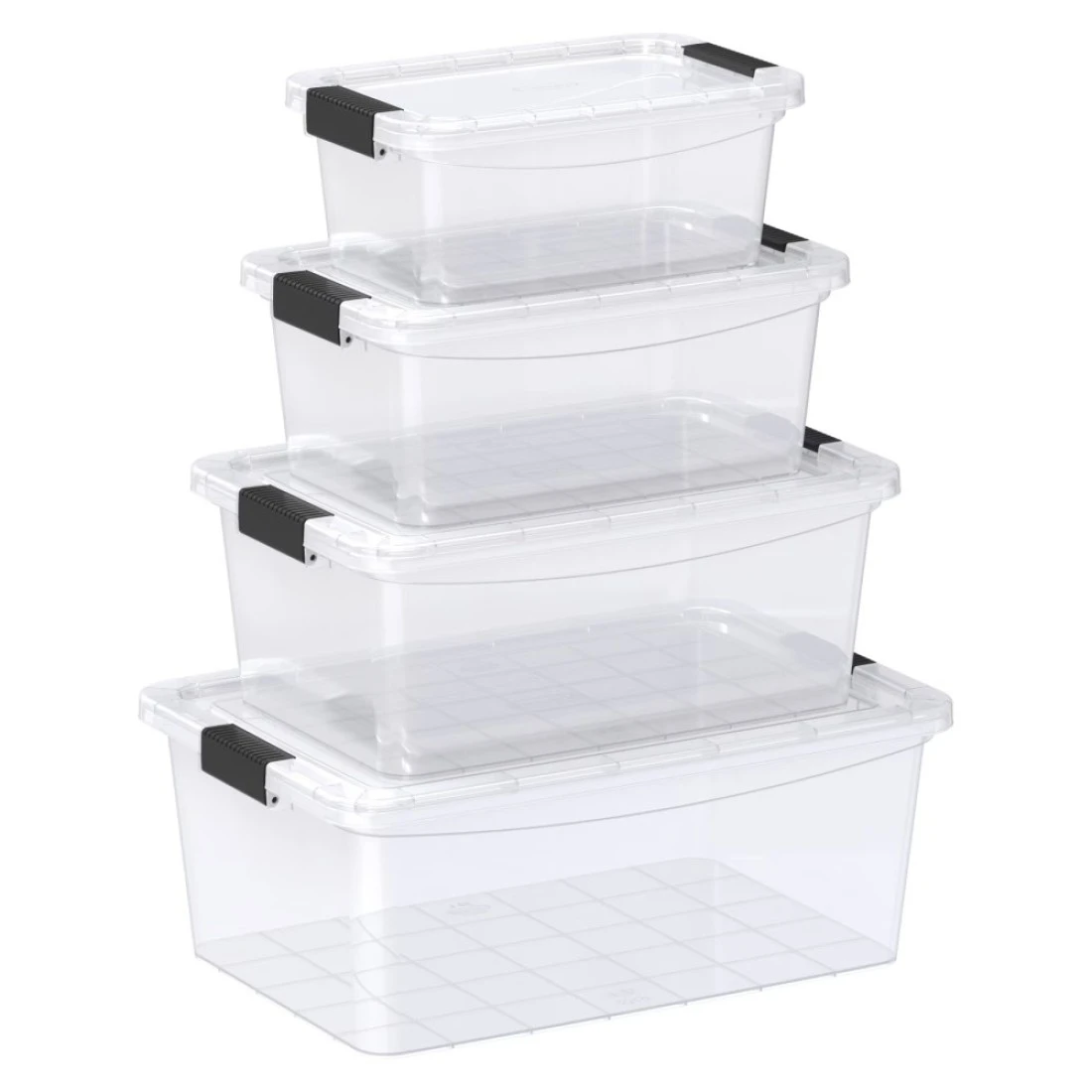 - تتضمن المجموعة أربعة صناديق تخزين بأحجام مختلفة