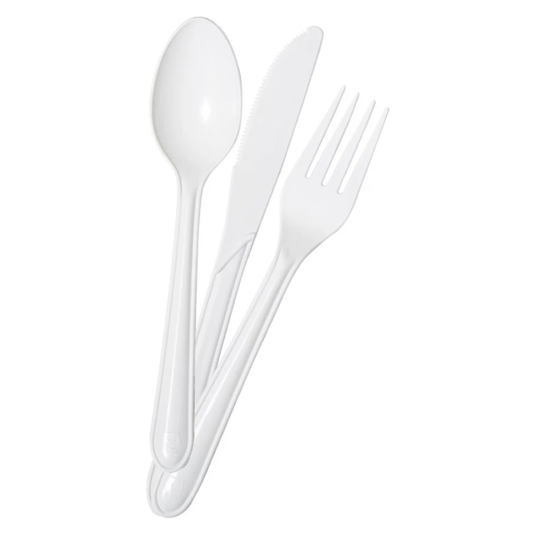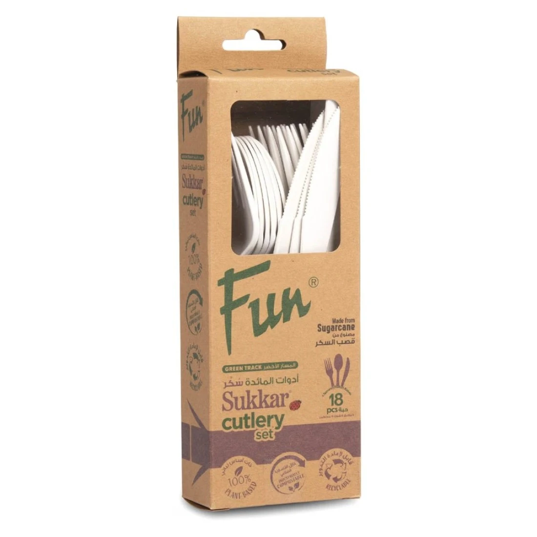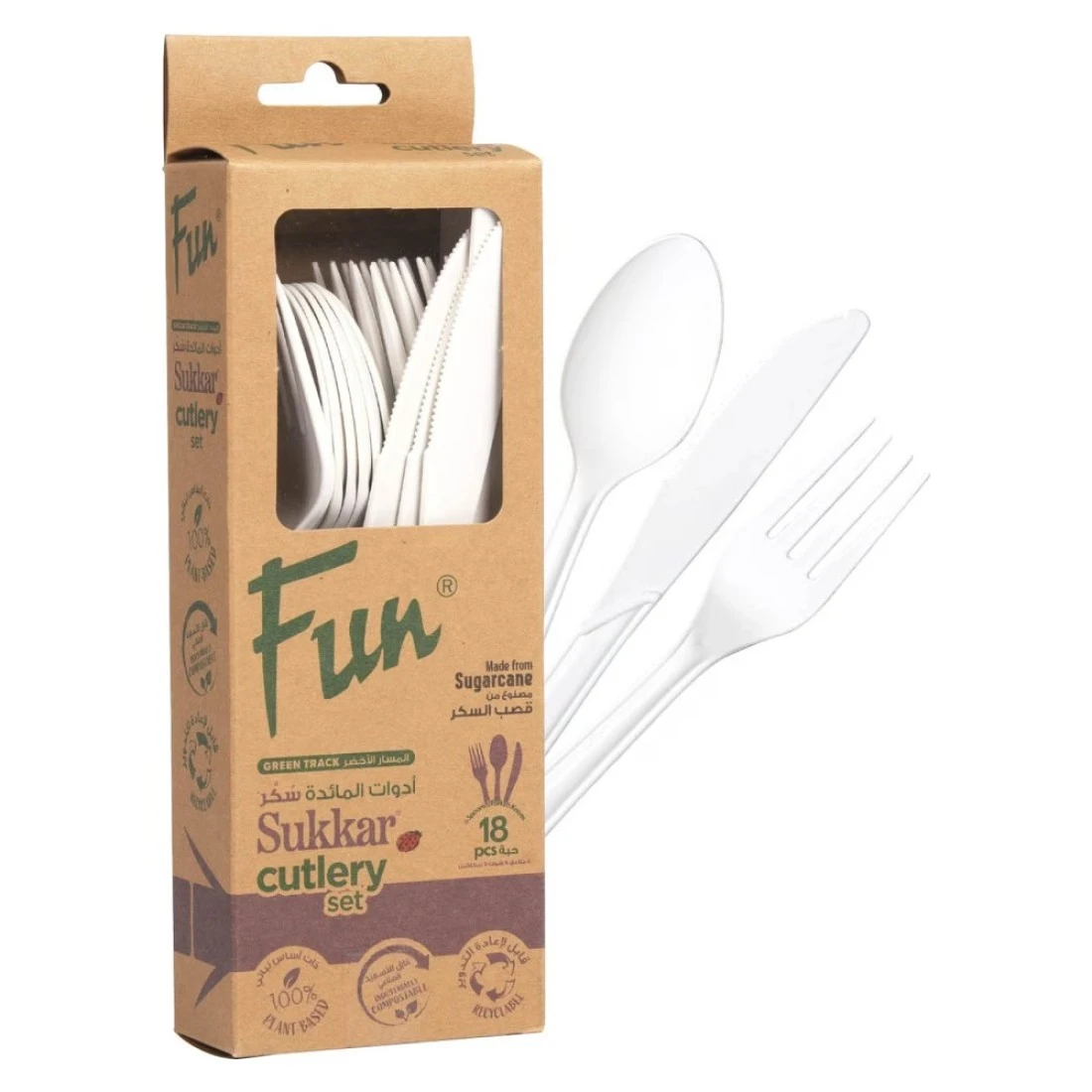 فان غرين تراك طقم أدوات المائدة مصنوع من لب قصب السكر - أبيض 18 قطعة