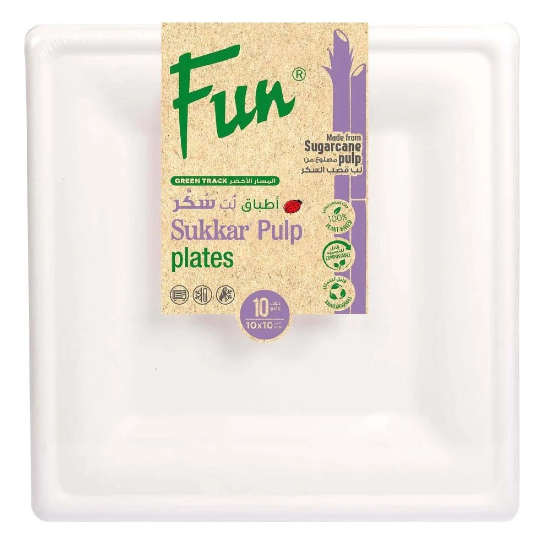 فان غرين تراك أطباق مصنوعة من لب السكر مربعة - أبيض 10 × 10 بوصة 10 قطع