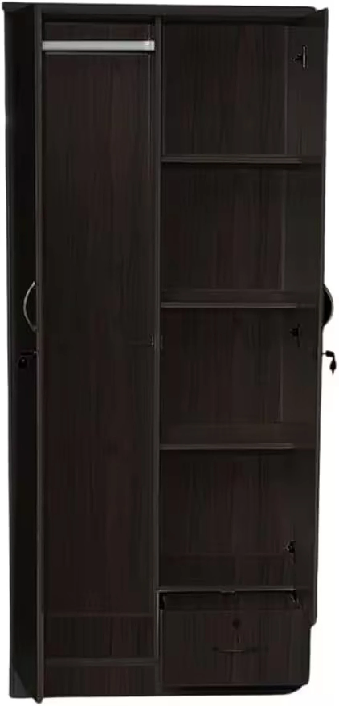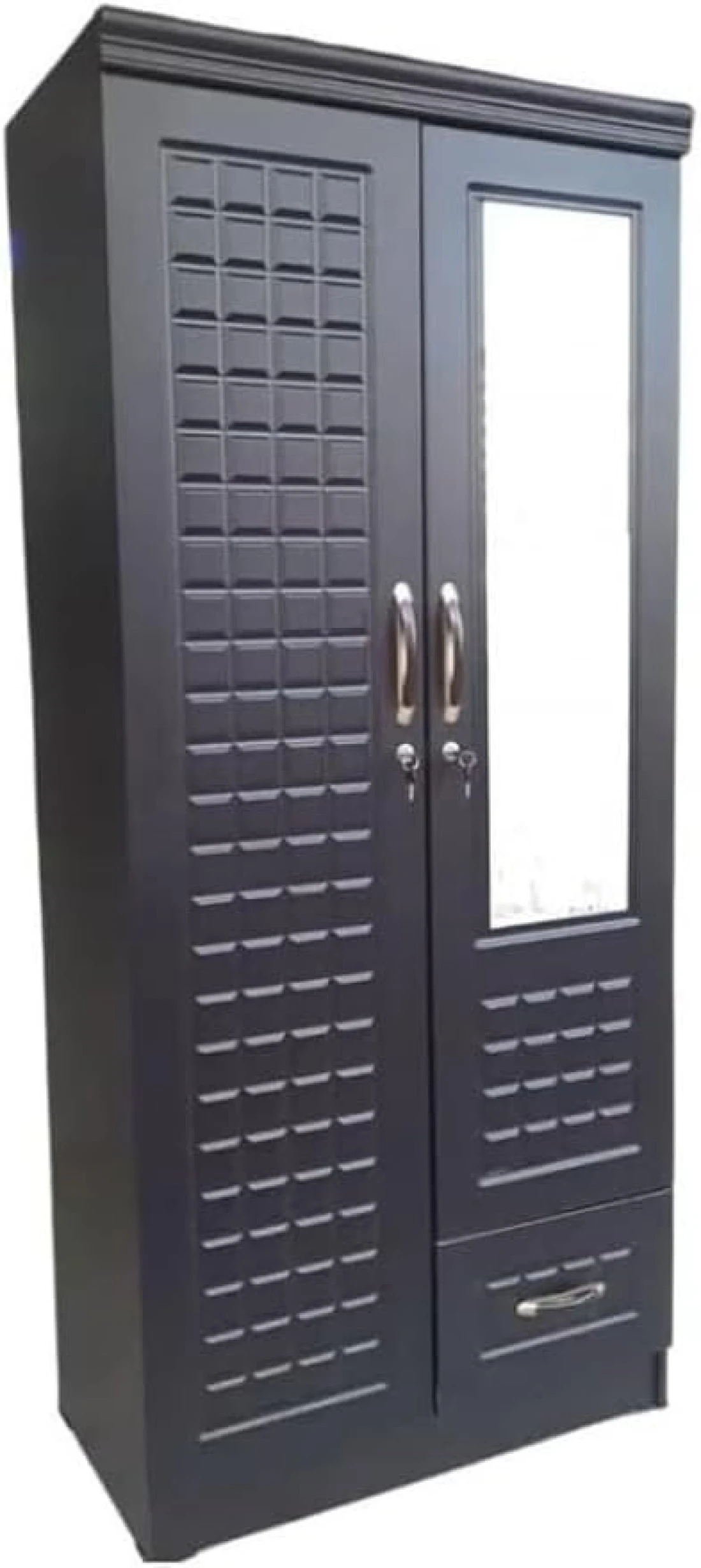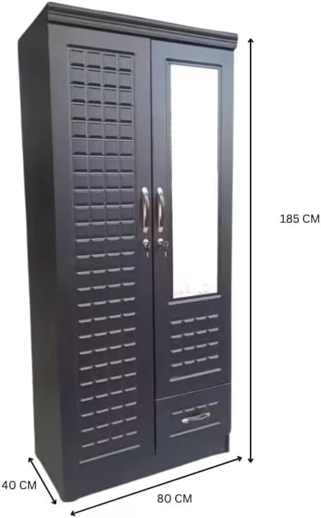 Galaxy Design 2 Door Wooden Wardrobe Cabinet Cupboard With Mirror and Drawer Lock Keys Size 190x51x53 Cm (Without Assembly, White)