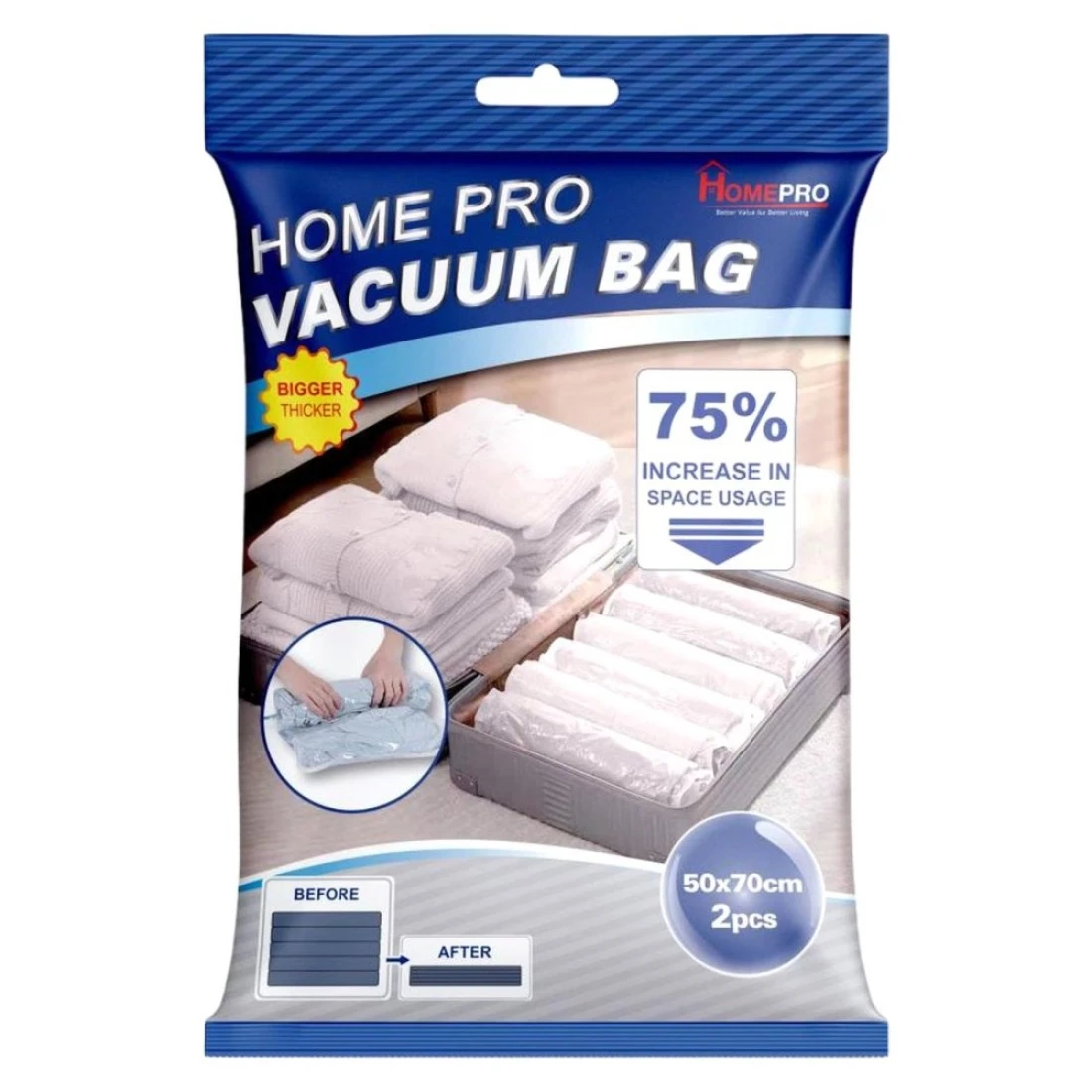 هوم برو كيس مكنسة كهربائية قابل للف لفة، 50x70 سم، 2 قطعة