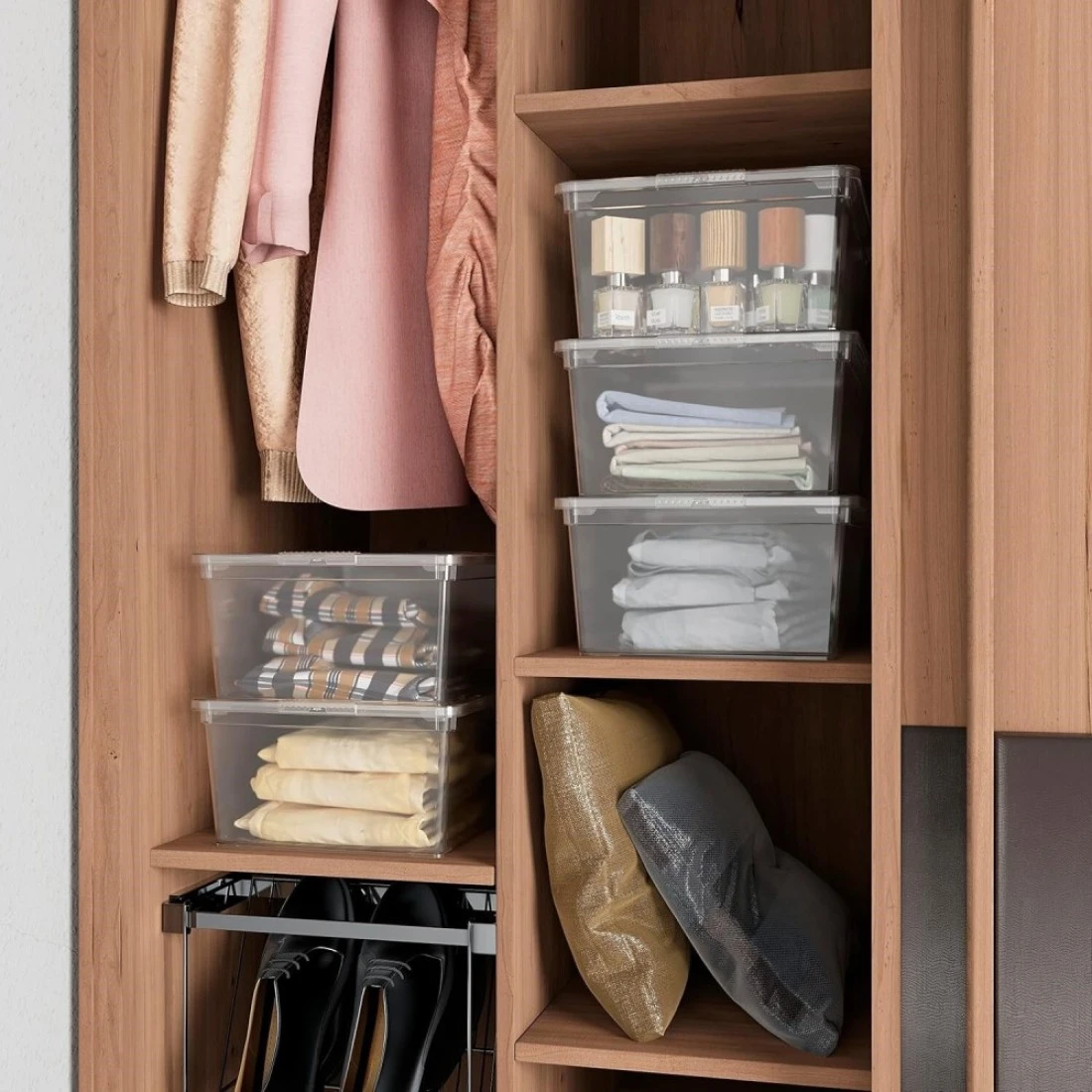 Keter C-Box XL Transparent Storage Container with Wheels 50L - Spacious and Clear Plastic Organizer for Wardrobe Efficiency